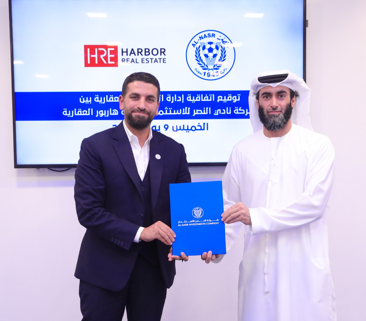 من جانبه ،قال السيد مهند الوادية المدير التنفيذي لهاربور العقارية :"أشكر مجلس ادارة شركة النصر للاستثمار على ثقتهم ،هذا شرف لنا و مسؤولية كبيرة ،هدفنا تفعيل كل الاستراتيجيات في خدمة محفظة نادي النصر للاستثمار و نسهم في تطوير دخلها والحفاظ على سمعة نادي النصر وهو علم من أعلام دولة الامارات ، وأتمنى أن نكون عند حسن ظنكم ".