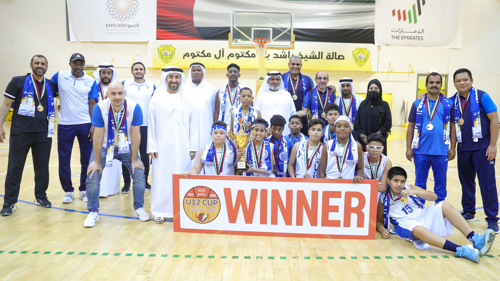 Al Nasr buds Basketball Team was crowned Basketball Cup buds champion after beating Sharjah 77/65 at Al Wasl Club Hall in an exciting final.The coronation ceremony was attended by Her Excellency Maitha bin Dhawi, Board Member and Head of the Women’s Committee in the Emirates Basketball Association, Farid Al Qaiwani, Board Member and Head of the Media Committee, Daoud Al Tamimi, Head of the Referees Committee, and Adel Saif, member of the Technical Committee, who crowned the victory buds, and handed them the championship trophy.