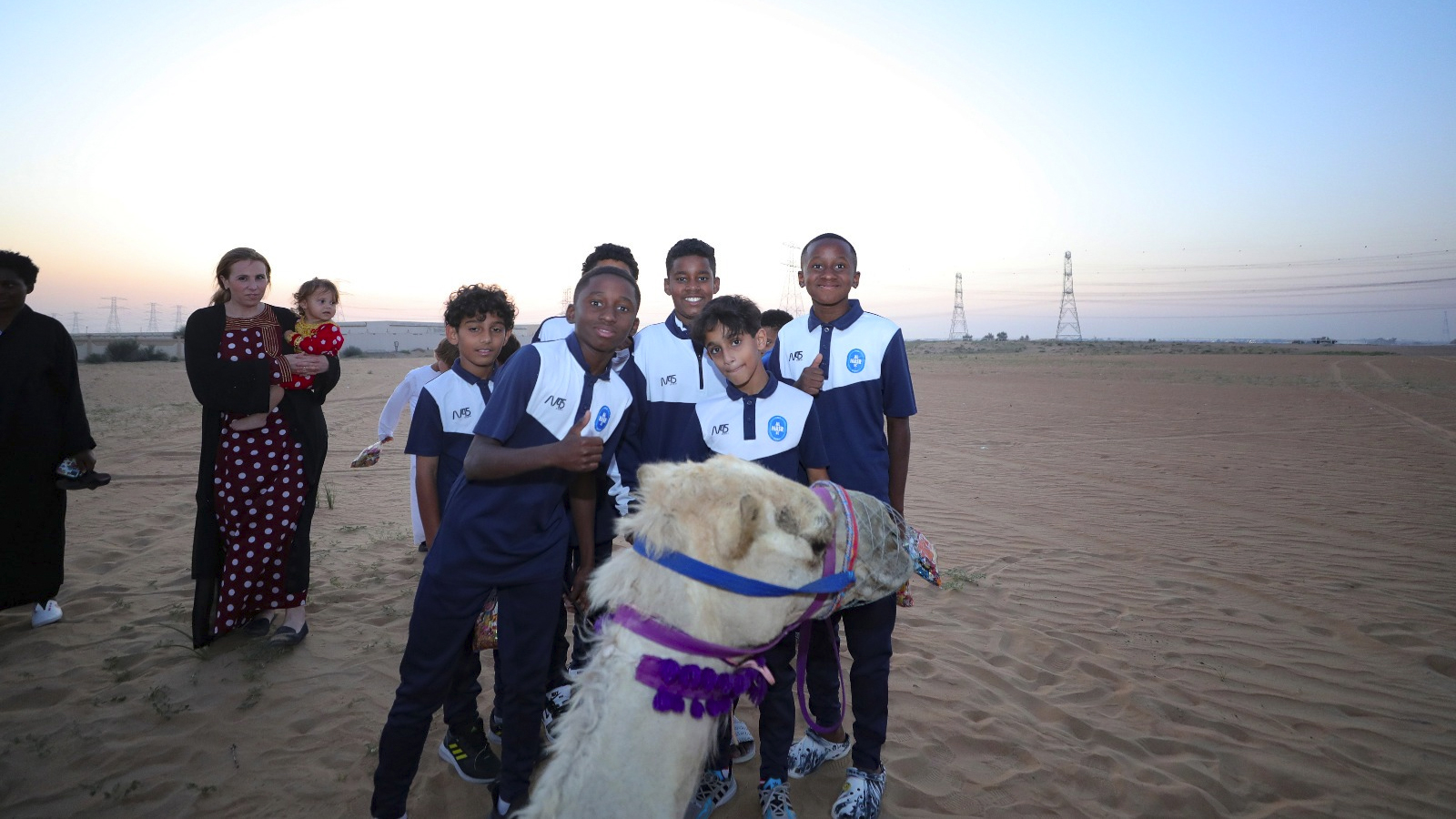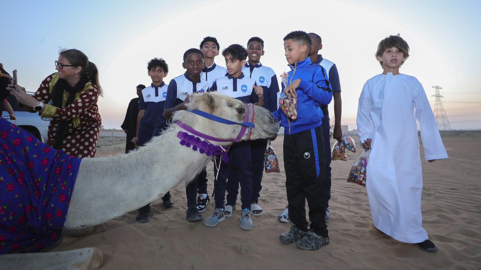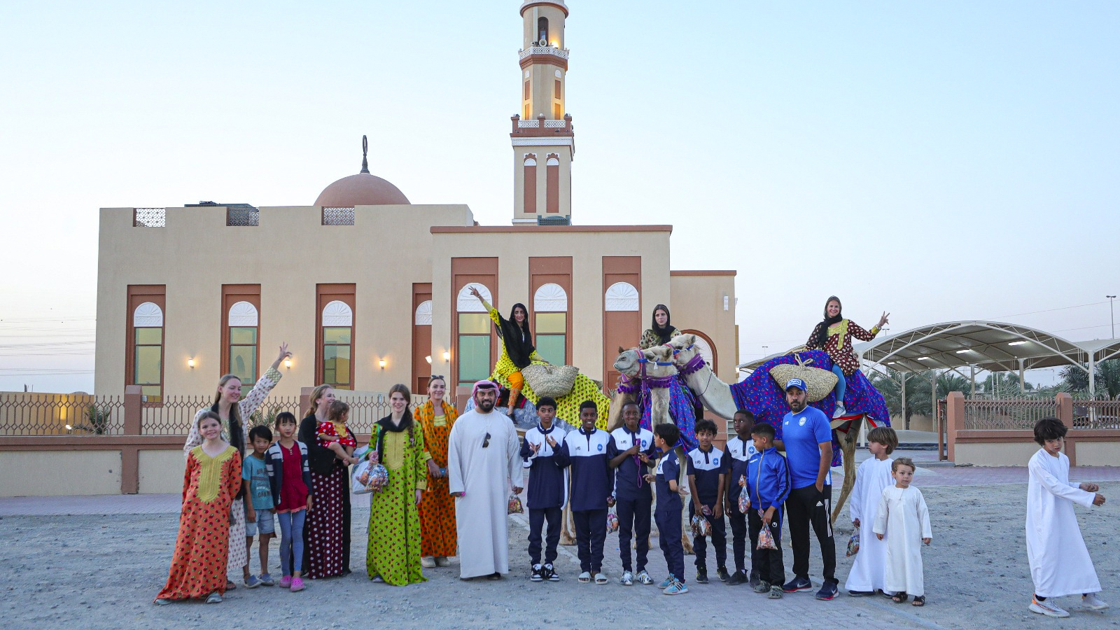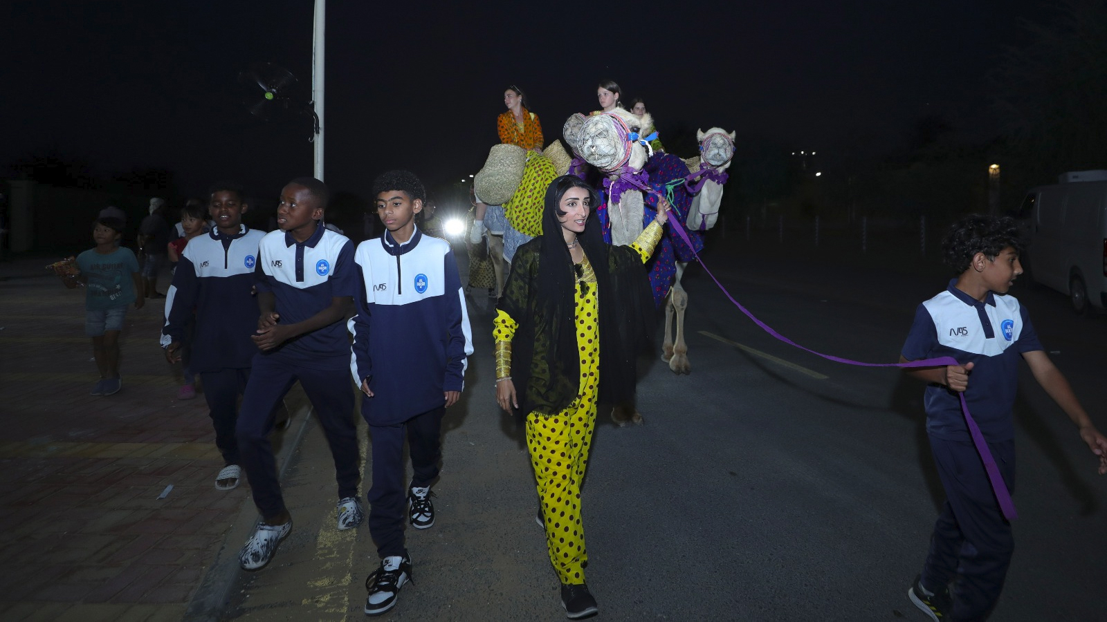 The players of Al-Nasr Football Academy celebrated the occasion of "Hag Al-Laila" at Al-Asouf Center for Camel Riding, in celebration of the night of the half of Sha'ban and the advent of the blessed month of Ramadan, where they distributed gifts to attendees, visitors and policemen, rode camels and caught the reins of a camel caravan, and participated in cultural and heritage activities in an atmosphere of pleasure and joy.