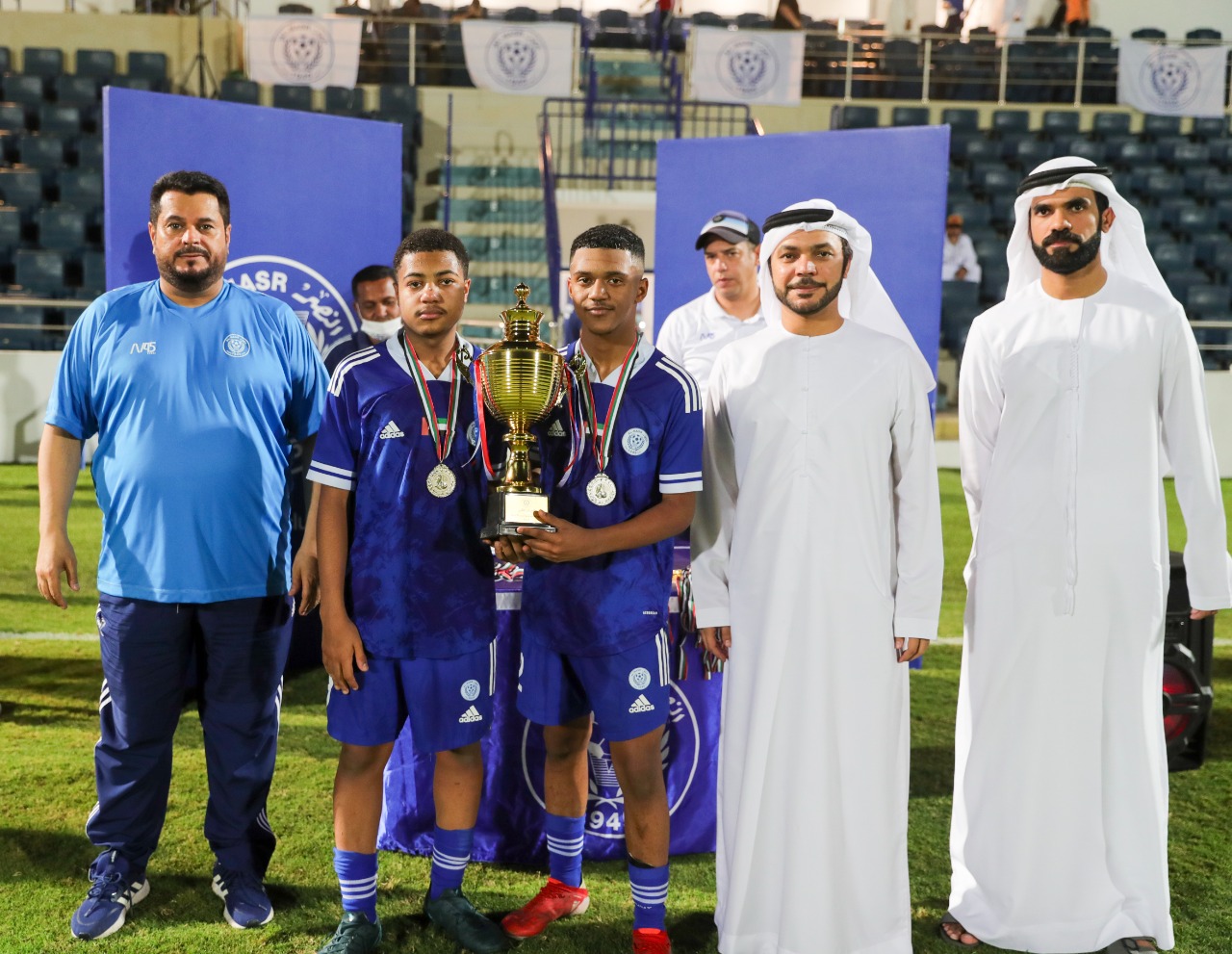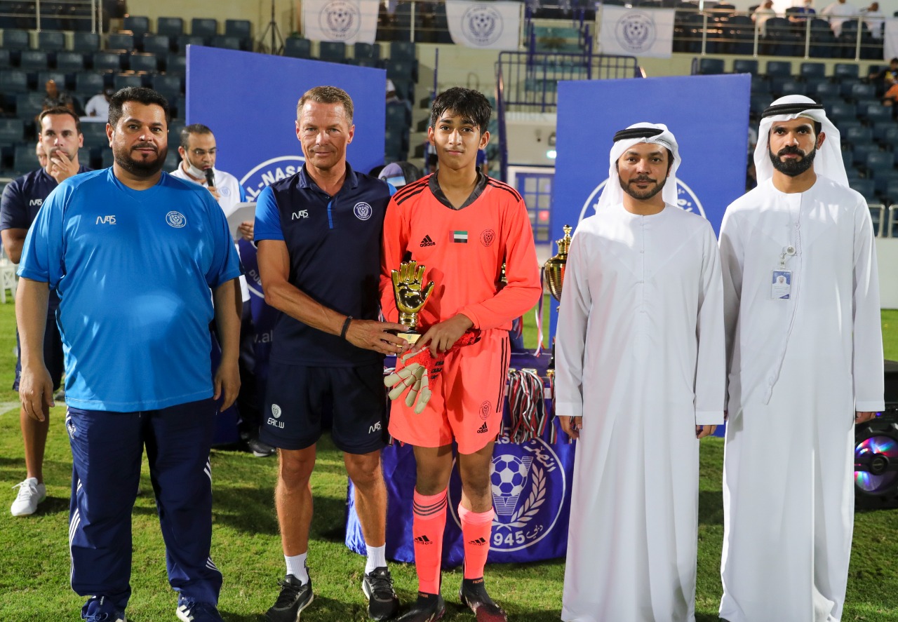 The final match and the closing ceremony were attended by Mr. Ahmed Al-Dalil, director of the Football Academy at Al-Nasr Club, and Youssef Al-Hammadi, the Administrative Supervisor at Al-Nasr Football Academy, where they congratulated the winners and handed them the championship cup and medals.