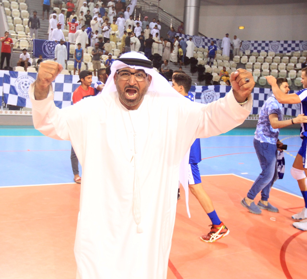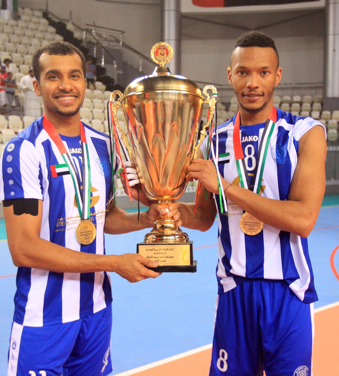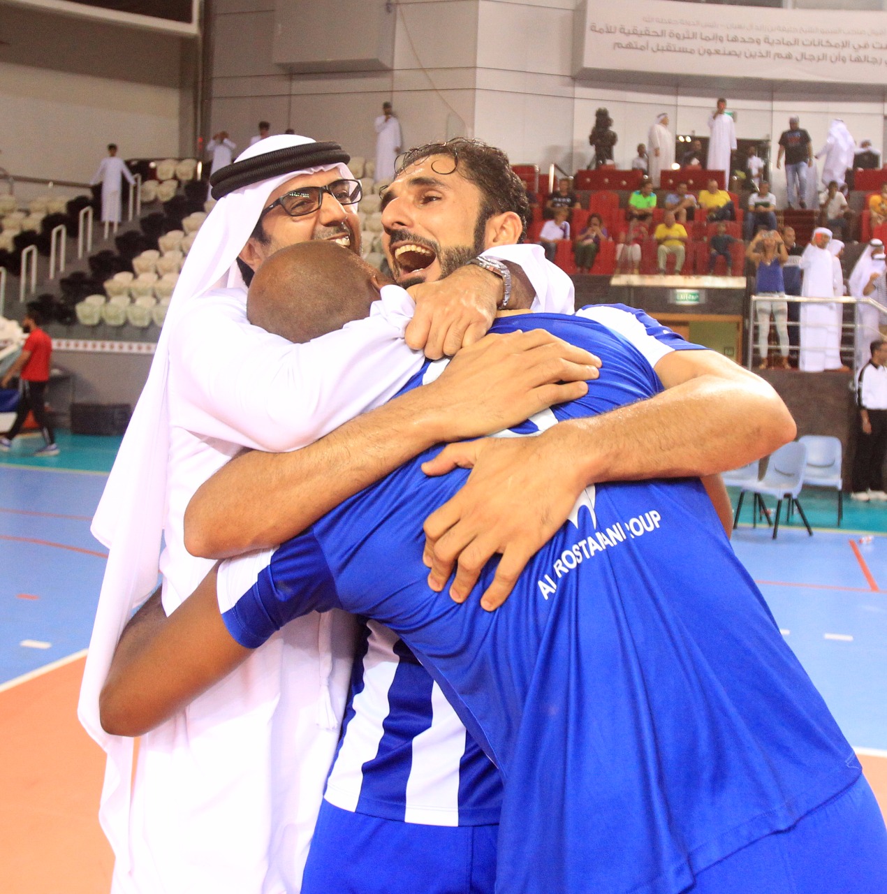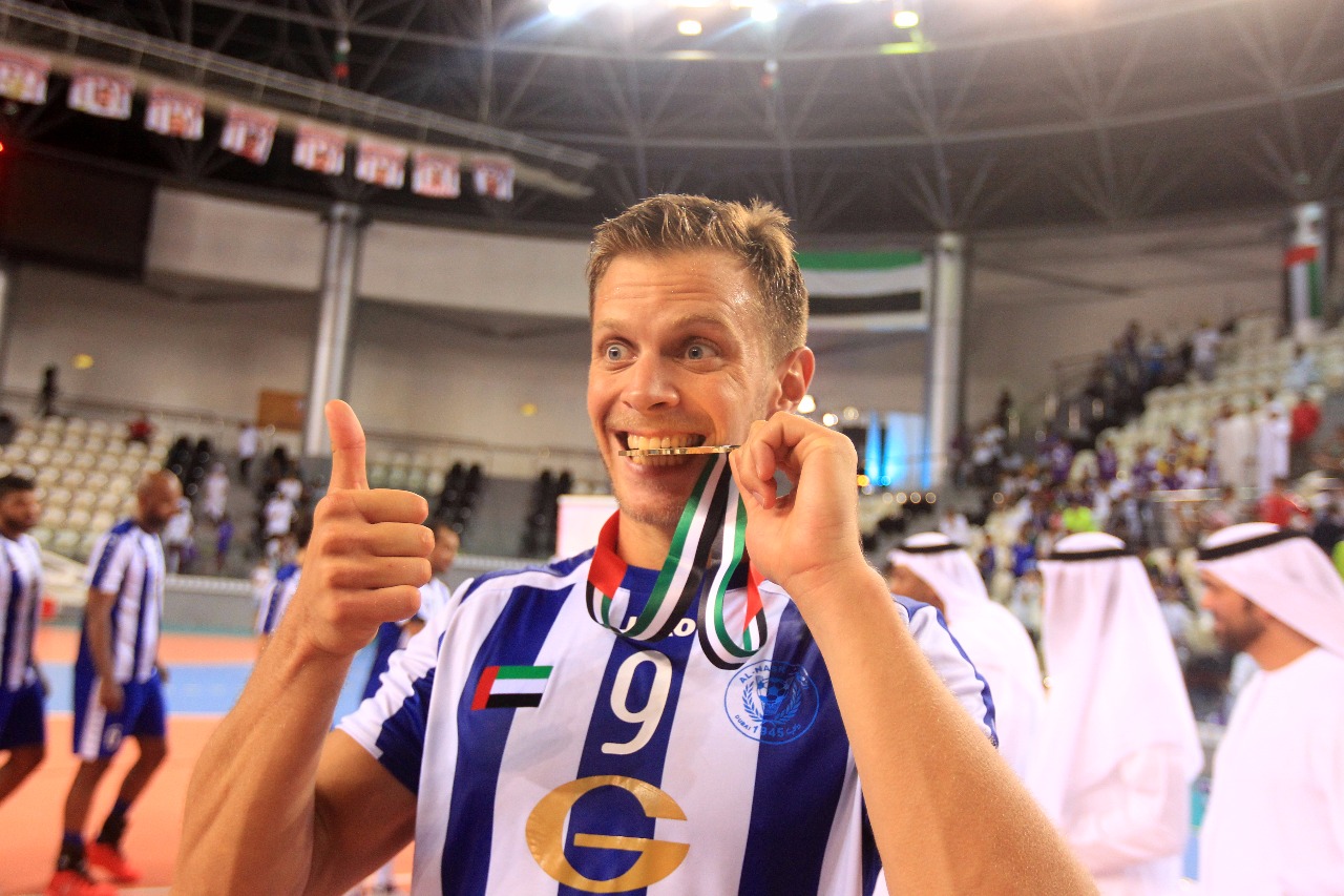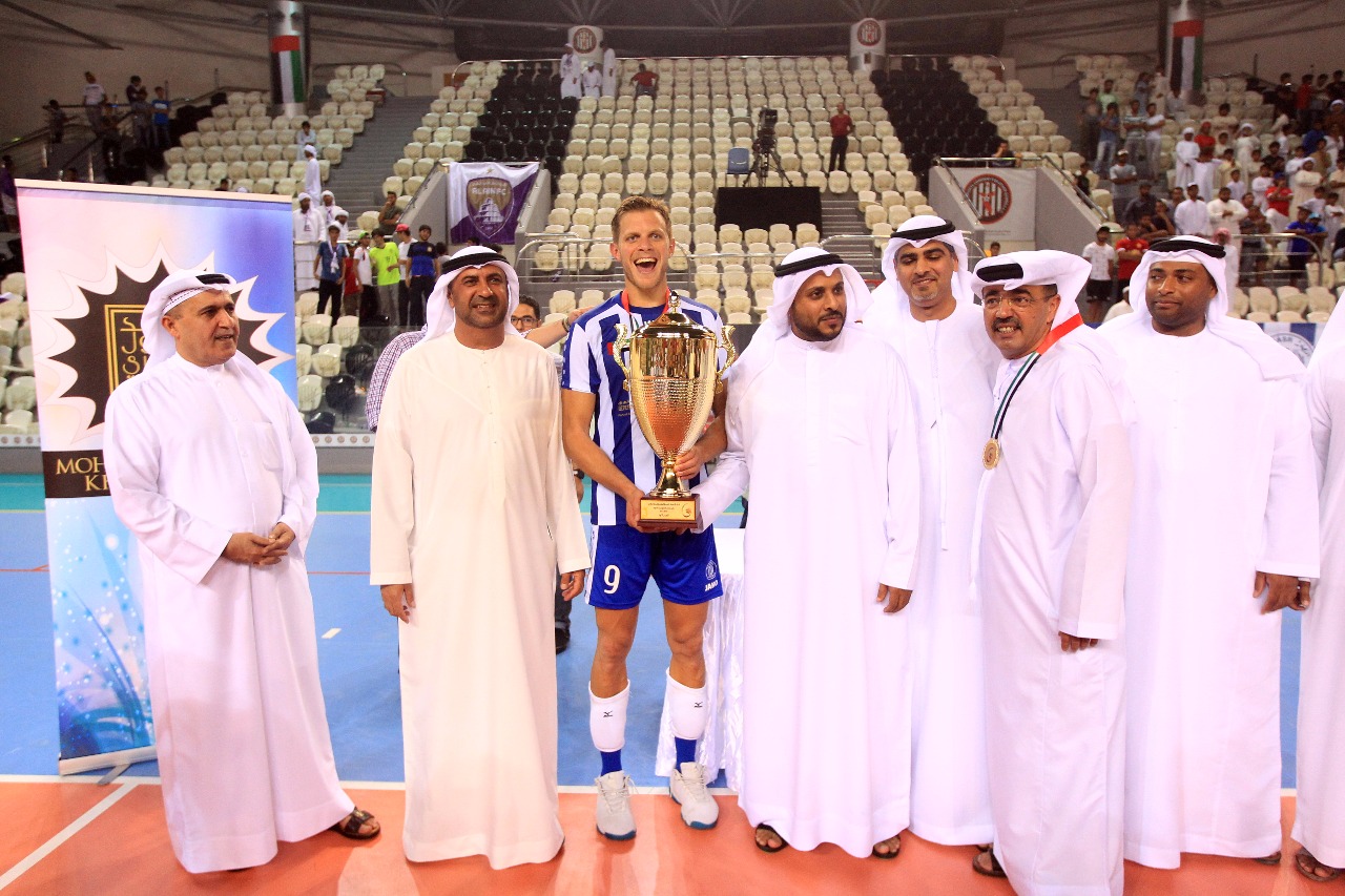 After the match, Youssef Al Mulla, President of the UAE Volleyball Federation and H.E. Abdulrahman Abu Al-Shawarab, Chairman of Al Nasr Sports Games Company, crowned the Al Nasr team with a great victory.