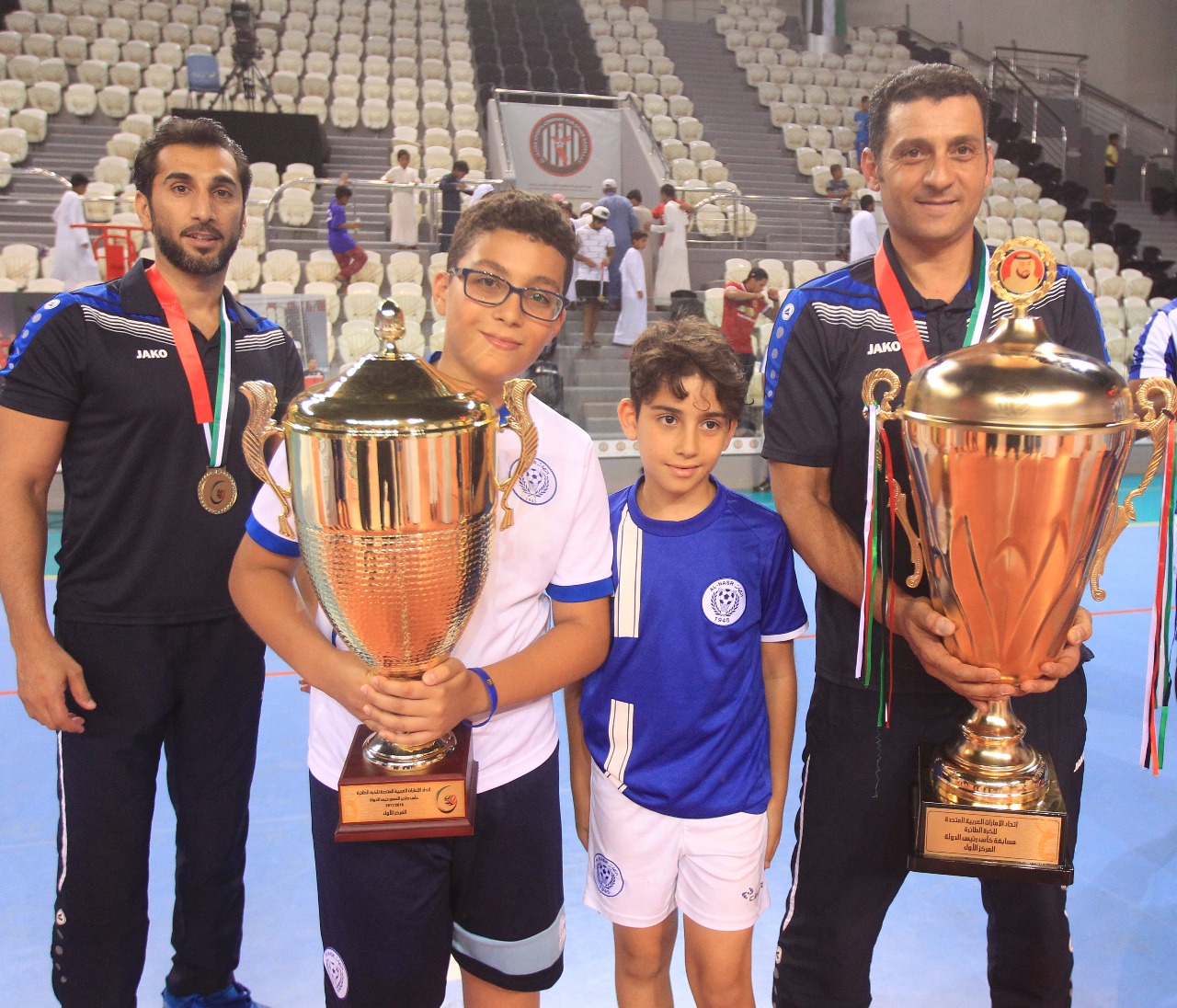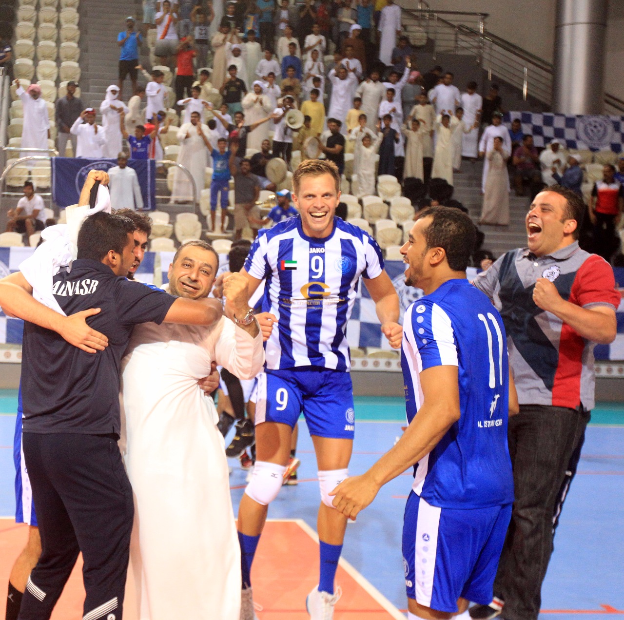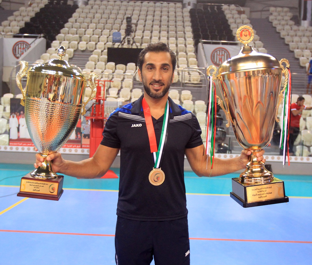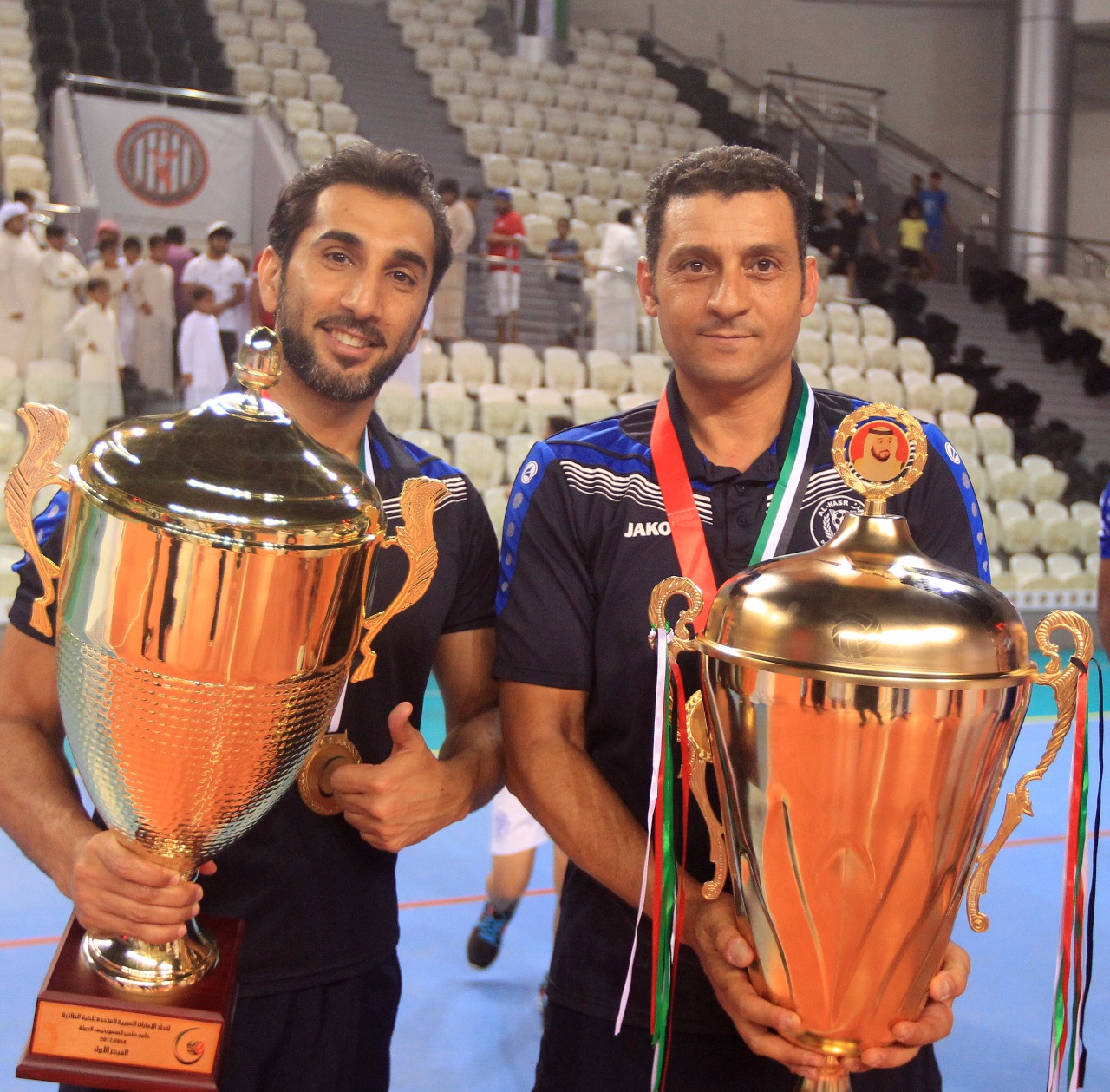 After the match, Youssef Al Mulla, President of the UAE Volleyball Federation and H.E. Abdulrahman Abu Al-Shawarab, Chairman of Al Nasr Sports Games Company, crowned the Al Nasr team with a great victory.