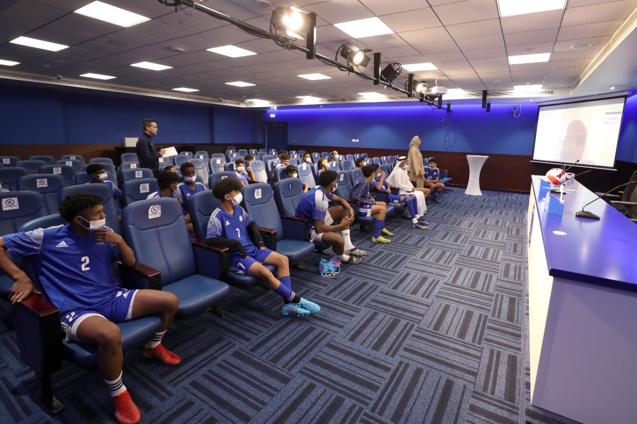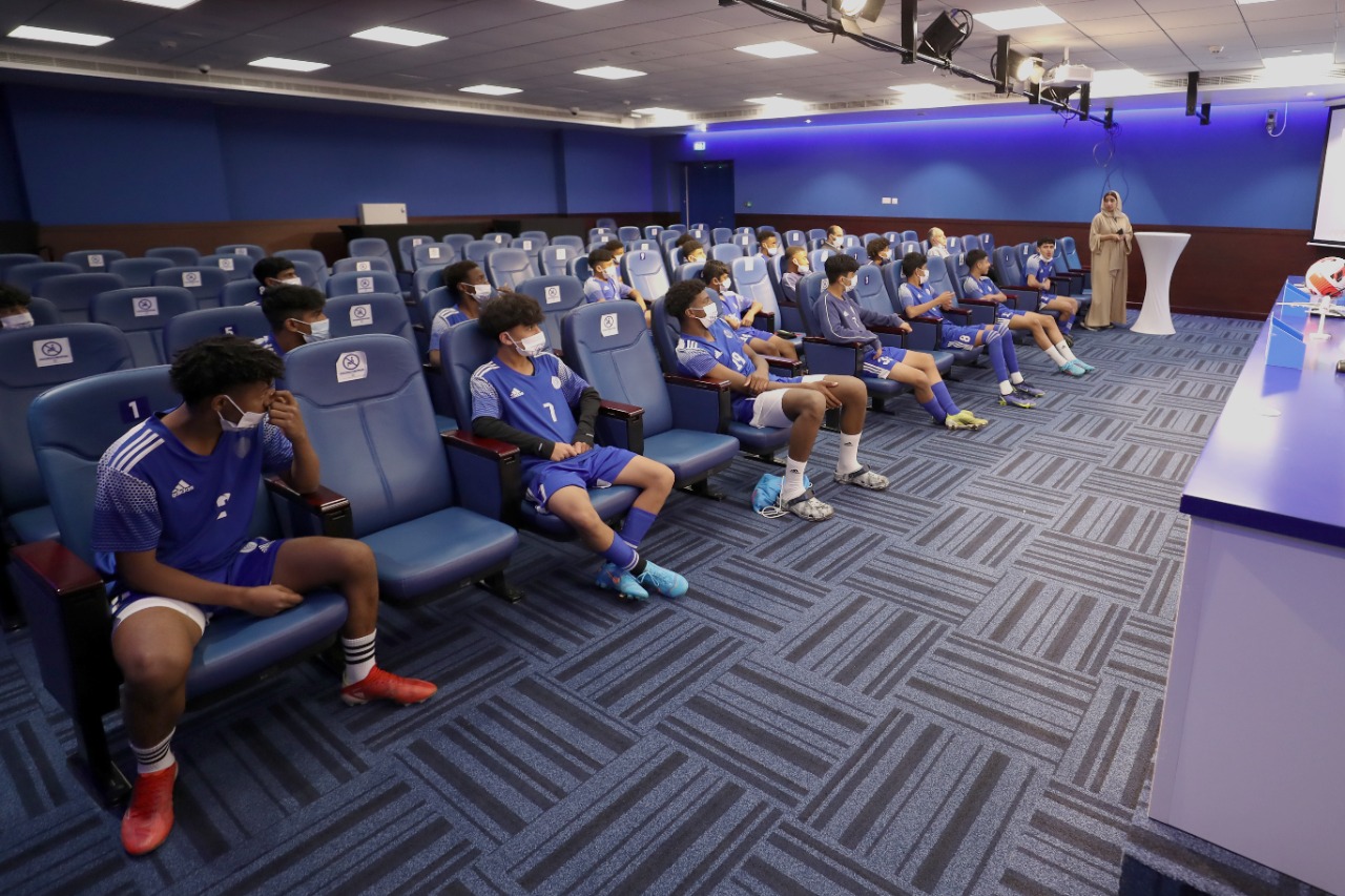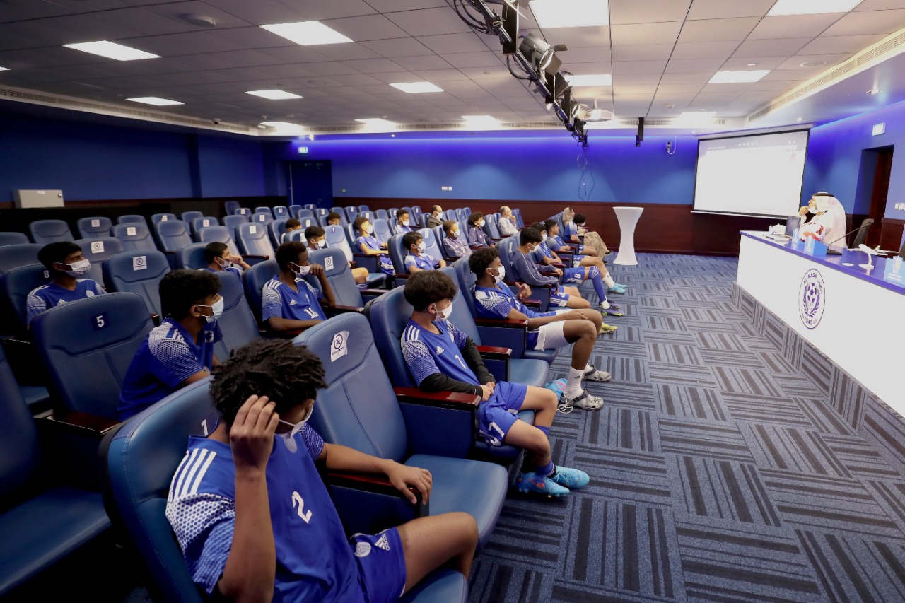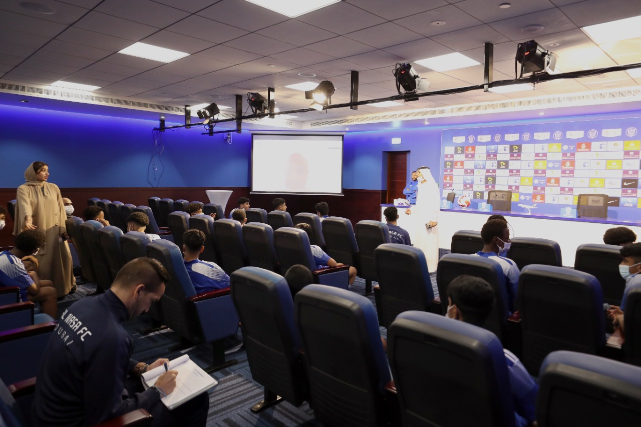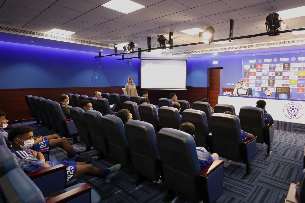 Al-Nasr Club held an awareness lecture for the 15-year-old football academy team about the harmful effects of smoking, which was presented through the video technology of Dr. in Psychology, Reda Masoudi.