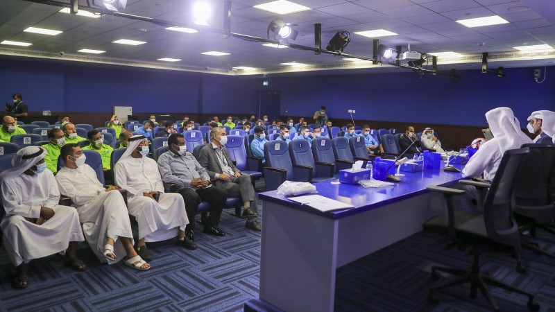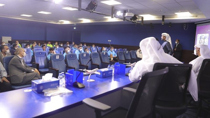 The lecture was delivered by Mr. Faisal Al-Qasim, the media advisor for Al-Nasr Club, and the two media persons, Ali Omar and Ali Al-Dhabiani.