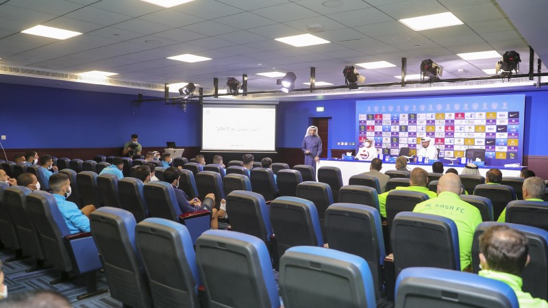The training sessions focused on introducing players to the role of the media, and media plat forms and dealing with them well, in addition to press conferences, supporting the club's accounts on social media, and developing skills in dealing with the camera, the media and the press.