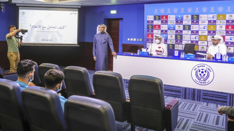 Within the media training activities, Al-Nasr Club organized today, Monday, a specialized educational and training workshop on dealing with the media in the perfect manner for first-team players and the age groups, entitled "Media Training Workshop".