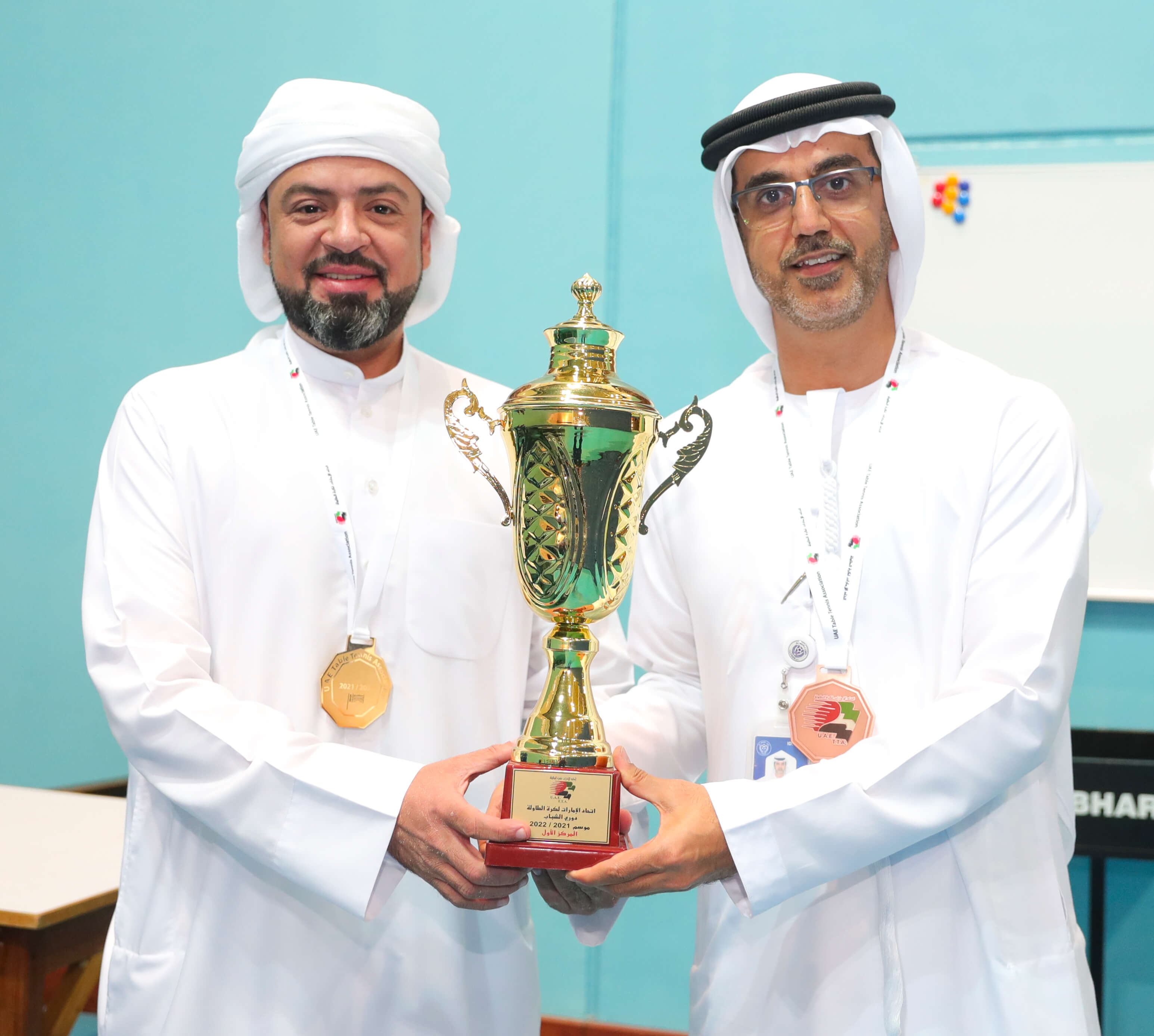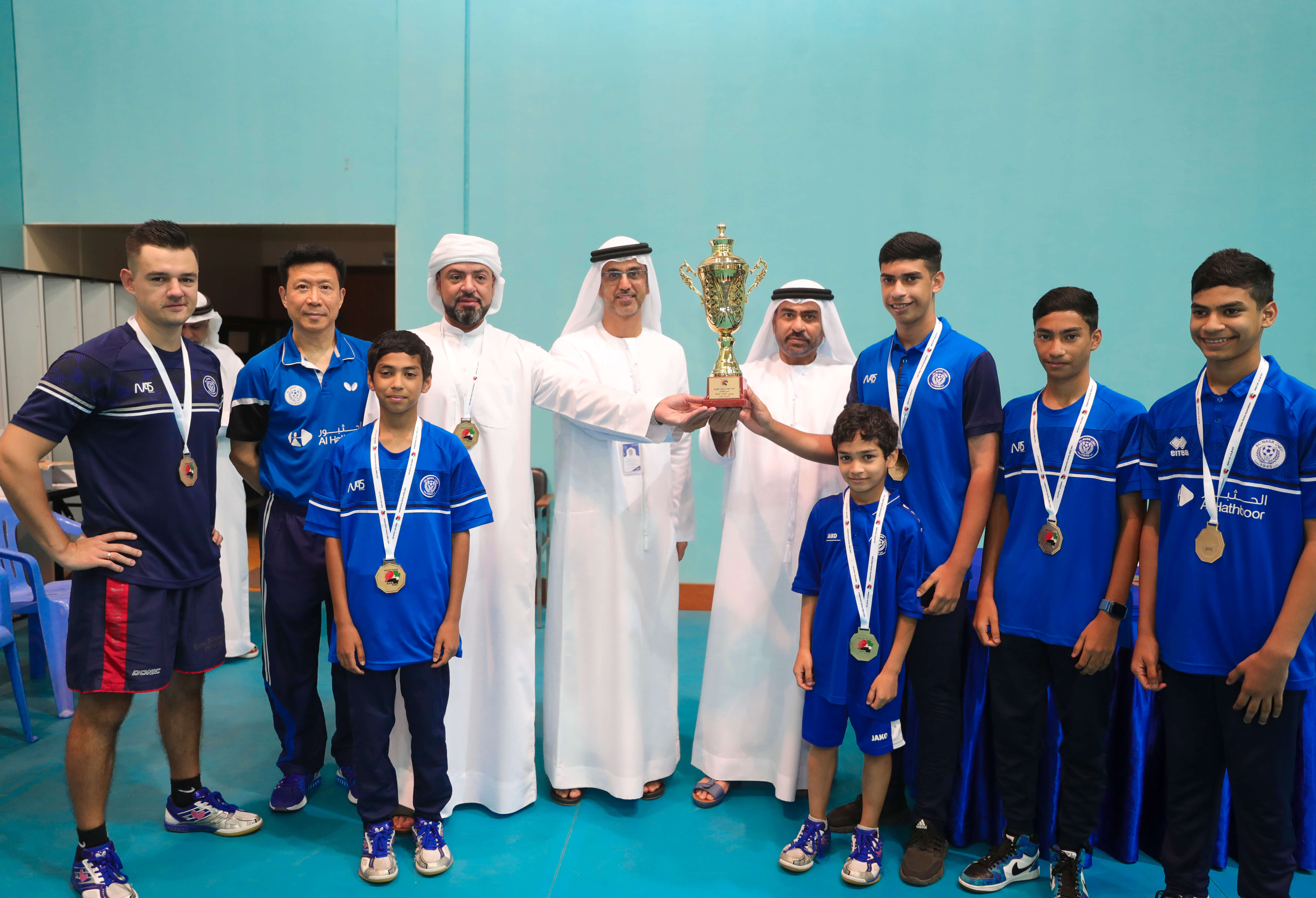 The coronation ceremony was attended by Ibrahim Al-Asam, Vice-President of the Emirates Table Tennis Federation, Hassan Al Zarouni, Secretary-General of the Emirates Table Tennis Federation, Ahmed Al-Janahi, CEO of Al-Nasr Sports Games and Khalifa Al-Hafezi, Director of Table Tennis at Al-Nasr Club. They congratulated the team on their great achievement, and handed the players Championship Cup and Gold Medals.