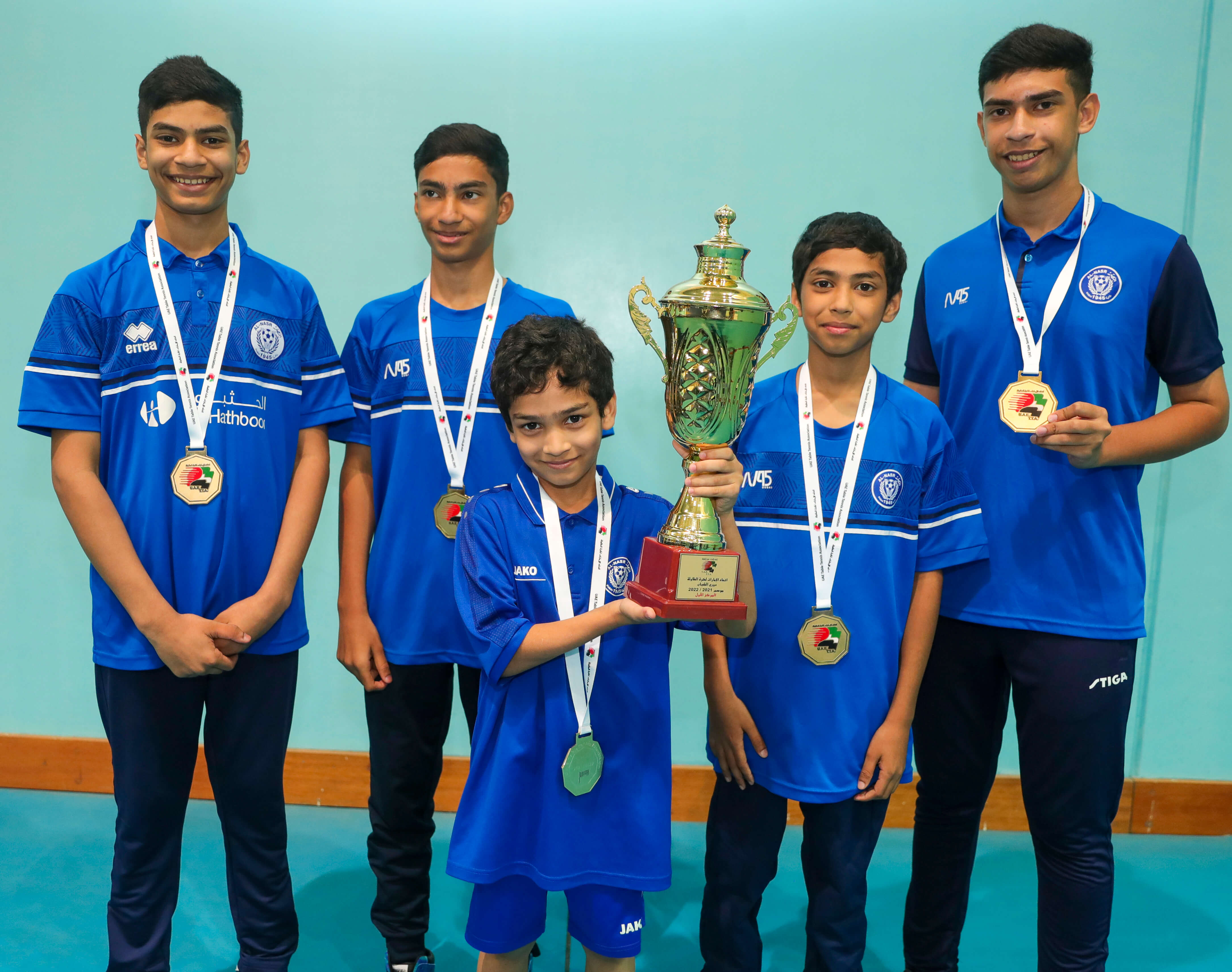 At Rashid bin Hamdan Hall, the Al-Nasr Youth team was crowned champions of the 2021-2022 Youth League for Table Tennis.