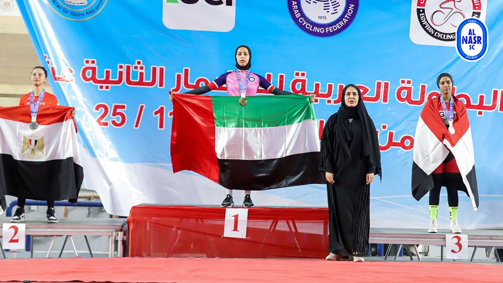 Cyclist Marwa Salman, representing Al-Nasr and UAE national youth team, achieved seven medals in the Arab Track Championship held in Cairo from November 23 to 25. The highlight was the only Emirati gold medal for females in the championship, particularly in the individual pursuit race. This significant accomplishment comes after a year of efforts to secure her first Arab gold medal.