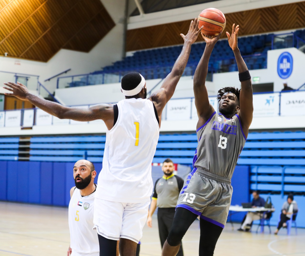 In the 13th round of the men's basketball league, at Rashid bin Hamdan Hall, Al-Nasr defeated its guest Al-Dhafra with a score of 78-65.
