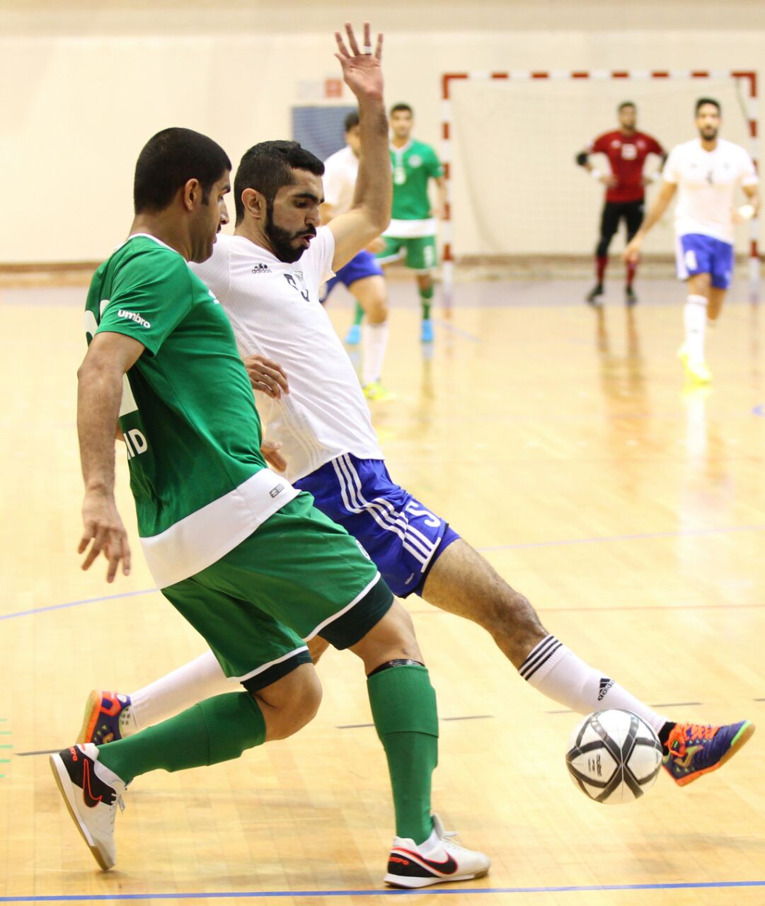 Al Nasr Futsal team won an important match against Al Shabab by 6 - 3 in the match held at Rashid Bin Hamdan Hall. The goals scored by Al Nasr Players; Ahmed Khalil, Ibrahim Obaid, Abdullah Karmistigi, Saood Khalfan and Talal Fahad ( 2 goals ).