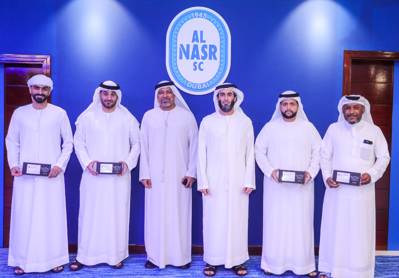 His Excellency Mansoor Al-Fallasi, Chairman of the Board of Directors of Al-Nasr Investment Company, Chairman of the N45 Fans Council, received and honored Al Nasr loyal fans, Mr Abdullah Ahmed Abdul Razzaq Istadi ,Mr Saleh Salim Malallah Khamis ,Mr Ali Hassan Ali Salim Al boroumi , and Mr Rashid Abdulla Lashkri Mohammad , winners of the four World Cup packages .