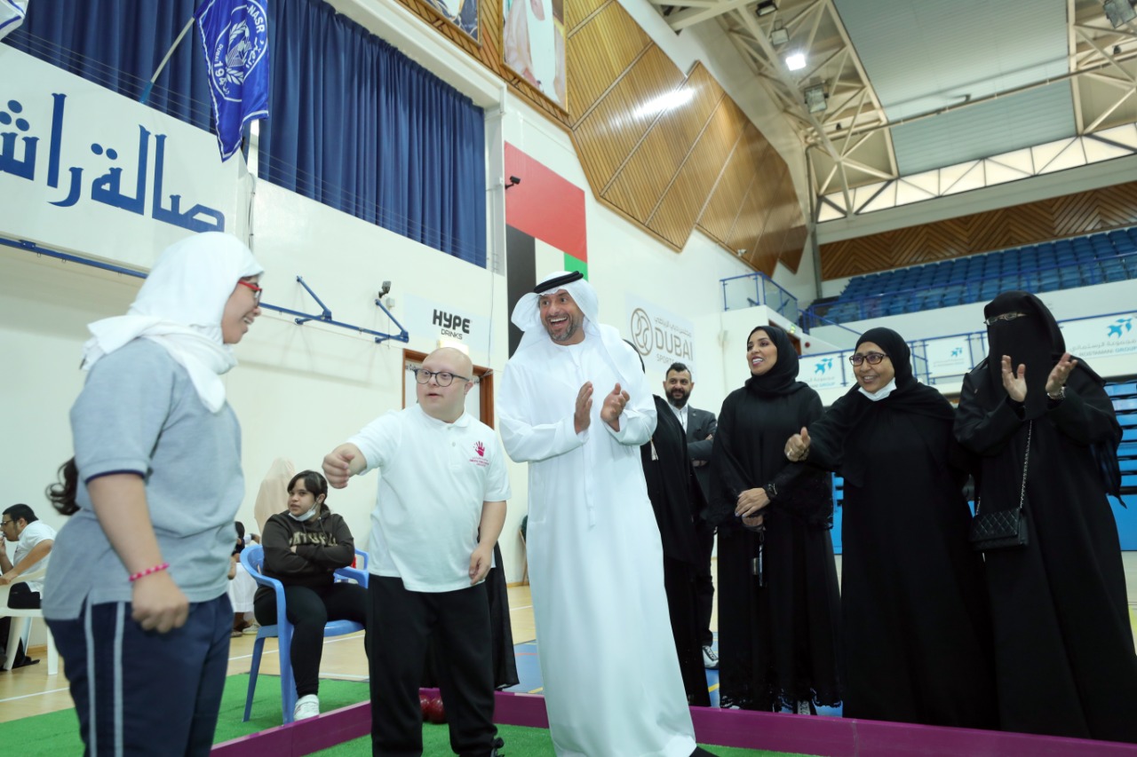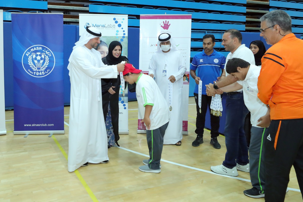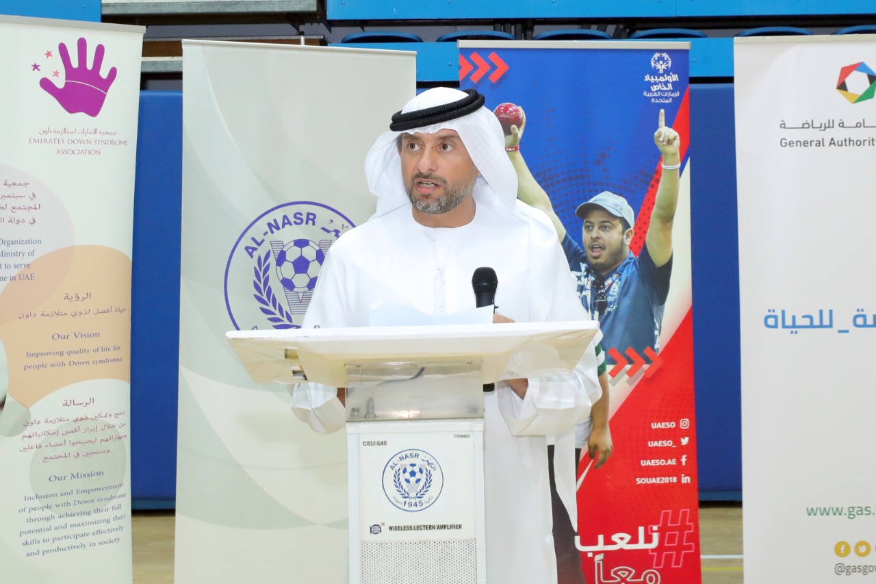In the presence of His Excellency Sheikh Suhail bin Butti Al Maktoum, Executive Director of the Sports Development Sector at the General Sports Authority, Her Excellency Noura Al Jasmi, Board Member of Al Nasr Investment Company, and Mr. Ahmed Al Janahi, CEO of Sports Games Company in Al Nasr Club, and as part of a series of “Sports for Life” initiatives, Al Nasr Club hosted an event "Sports Day for People with Down Syndrome" at Rashid bin Hamdan Hall, within the framework of the club's keenness to actively contribute to community events, and to promote the community sports culture, which contributes to supporting people of determination at all levels, especially sports, and helps empower them and integrate them into society and motivate them to achieve successes and achievements. .