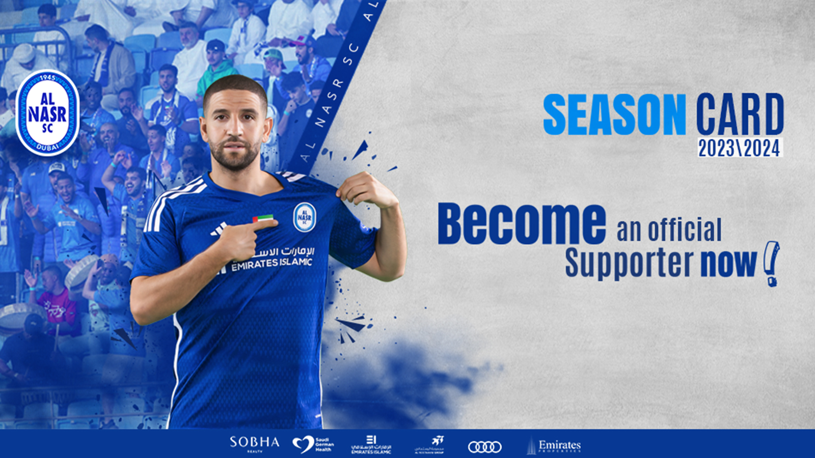 In a step aimed at strengthening its connection with its fans, Al Nasr Sports Club has introduced a range of exclusive season cards for its supporters for the 2023-2024 sports season. The cards can be obtained through the following link: