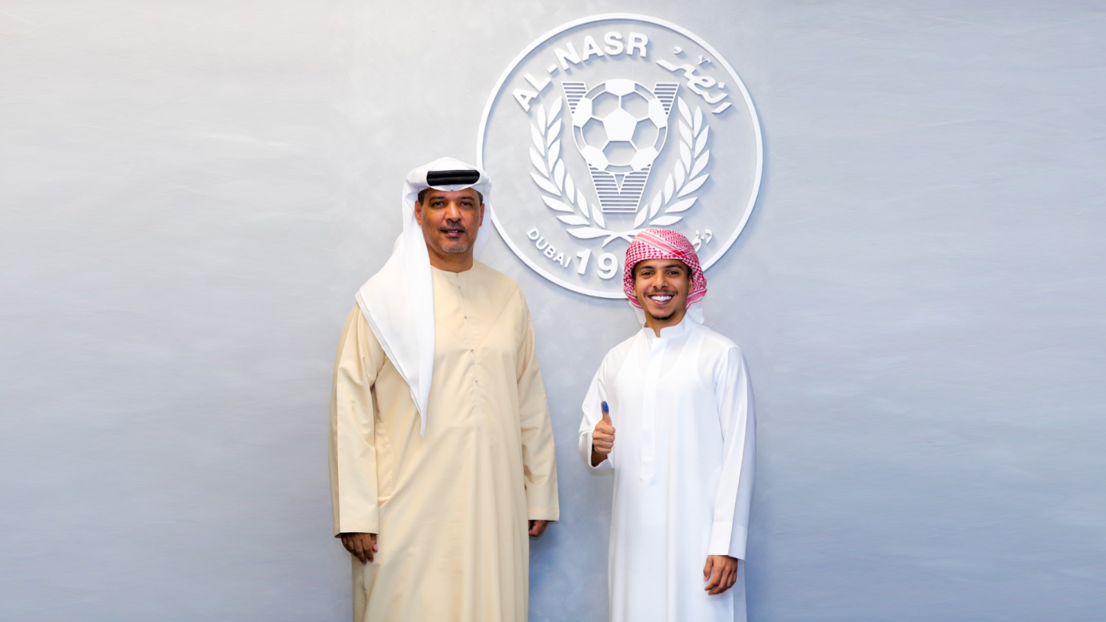 Al Nasr Football Company renewed its contract with midfielder Hussein Abdullah until 2023, as the contract was renewed in the presence of Mr. Saeed Al-Ameri, CEO of Al-Nasr Football Company, and the player Hussein Abdullah and his agent.