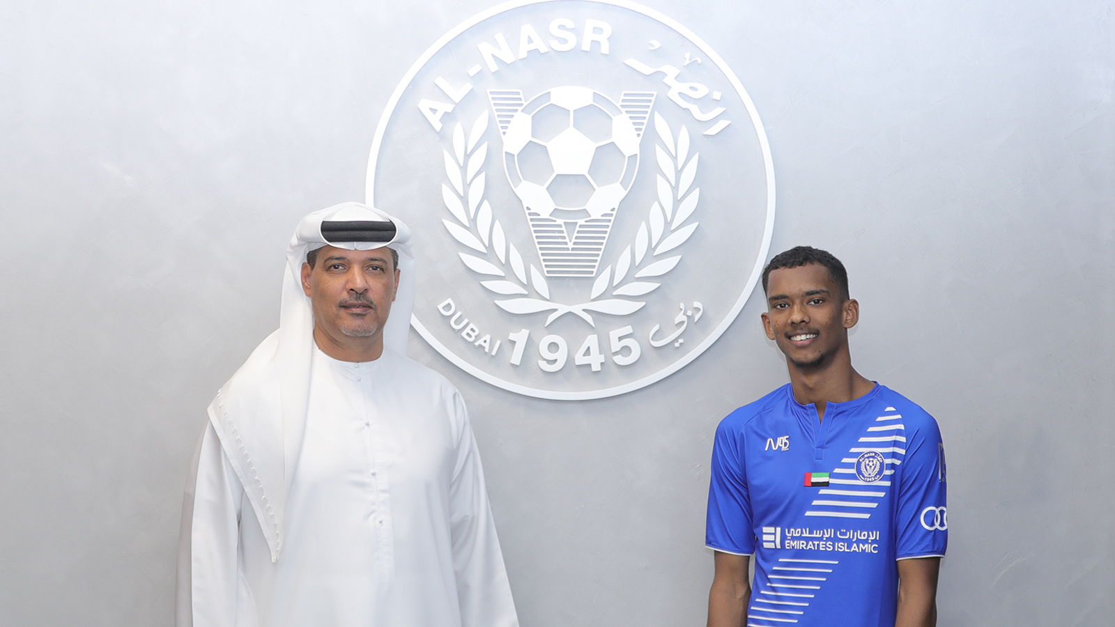 Al Nasr Football Company signed a professional contract this evening with young striker Abdulrahman Hassan until 2024