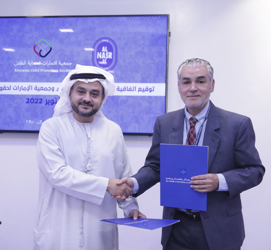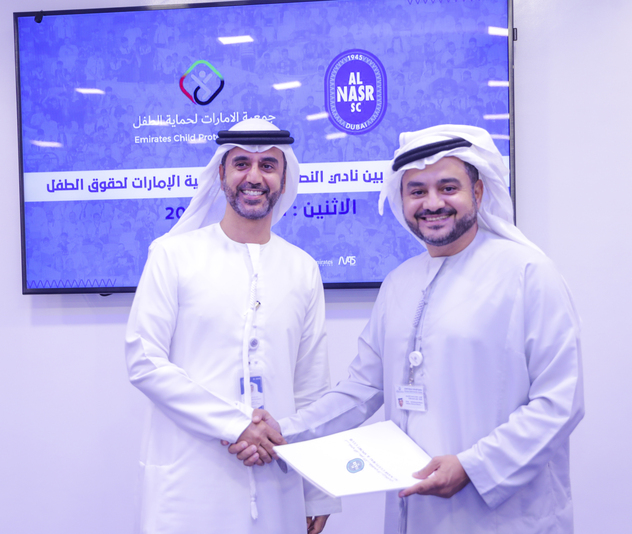 Al Nasr Club and Emirates Child Protection Association signed a cooperation agreement, within the framework of the club’s social responsibility, and its keenness to provide an appropriate and safe environment for children to practice sports, and to abide by the implementation of Wadeema law on child protection , and related best practices.
