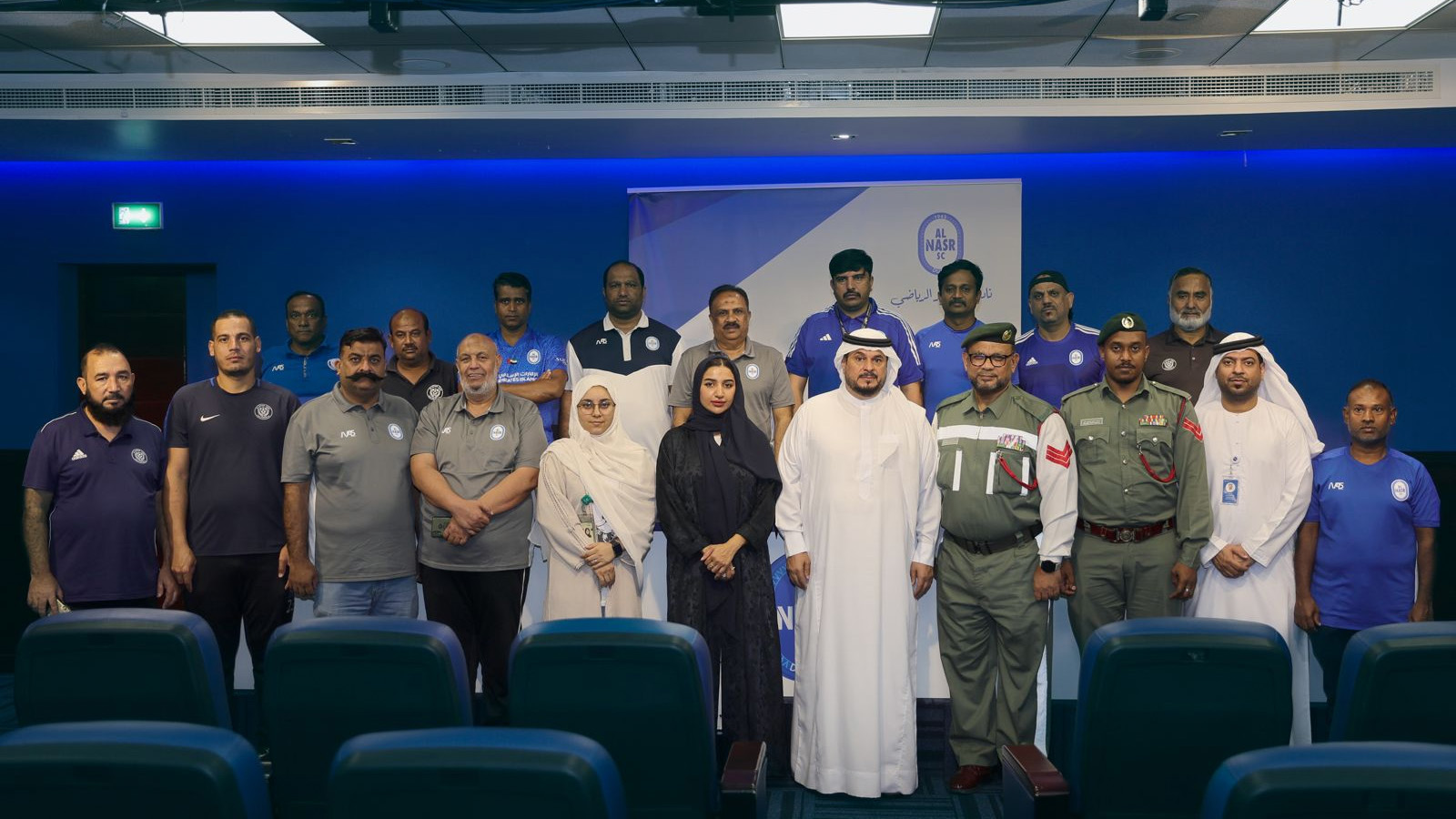 Al Nasr Sports Club organized a special awareness lecture for the club’s buses drivers in collaboration with the Positive Spirit Council and the Security Awareness Department at the General Administration of Community Happiness. The aim was to enhance awareness about the importance of road safety and improve the drivers' skills in handling vehicles and ensuring passengers safety.