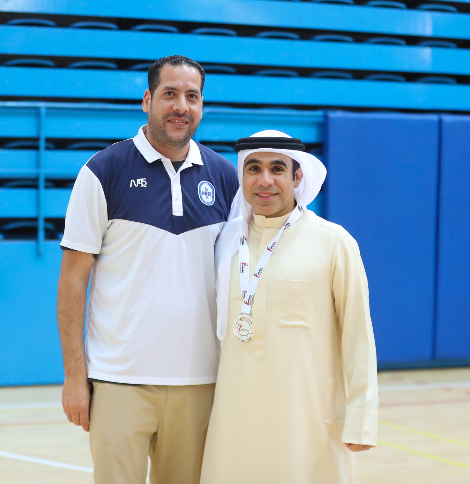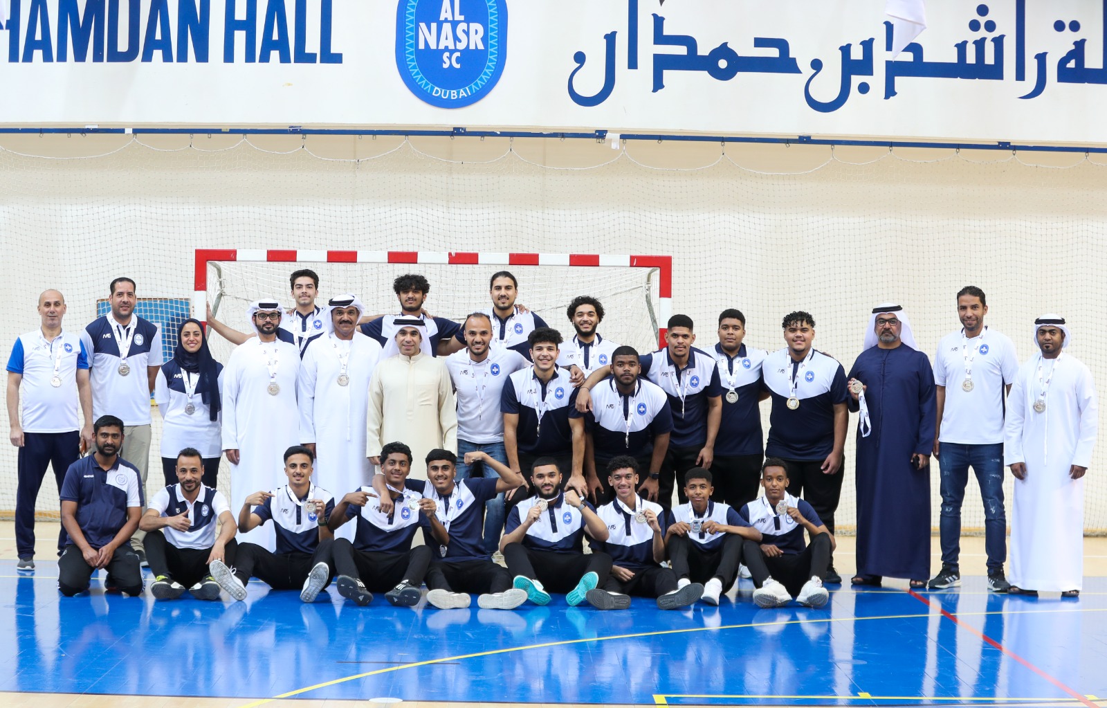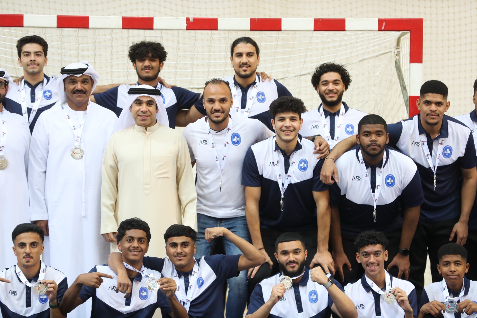 In the presence of Mr. Marwan Singel, Vice Chairman of the Board of Directors of Al-Nasr Sports Games Company, Al-Nasr junior handball team was crowned in Rashid Bin Hamdan Hall as the runner up of the Junior handball League Championship for the 2022-2023 season, where the team was honored and its players were handed silver medals.
