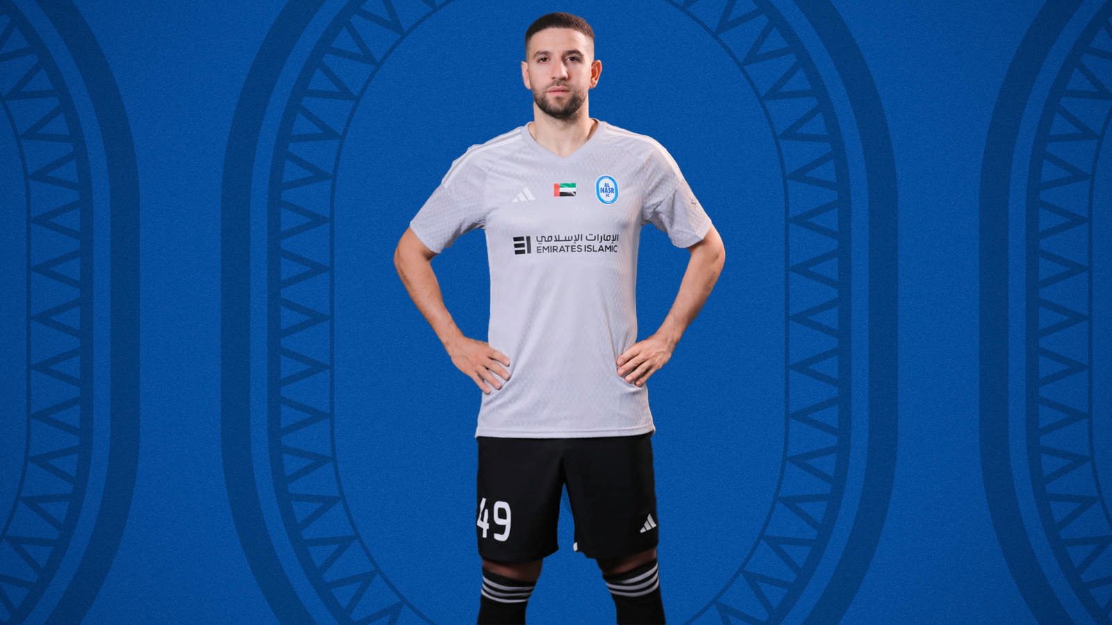 The shirt is distinguished by the presence of the Emirates flag, which increases its beauty and elegance, and it bears the Adidas and Emirates Islamic Bank logos on its chest, and Sobha Realty logo on the left sleeve, and on the upper back is the logo of the Al Rostamani Group, the official sponsors of the team, and it will soon be available in the club’s official store.