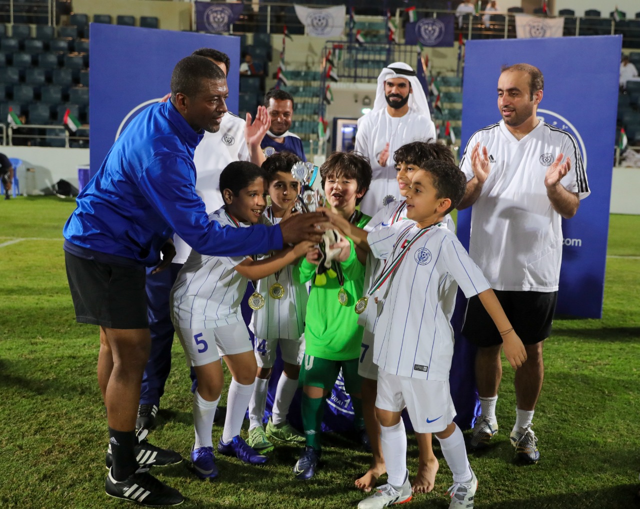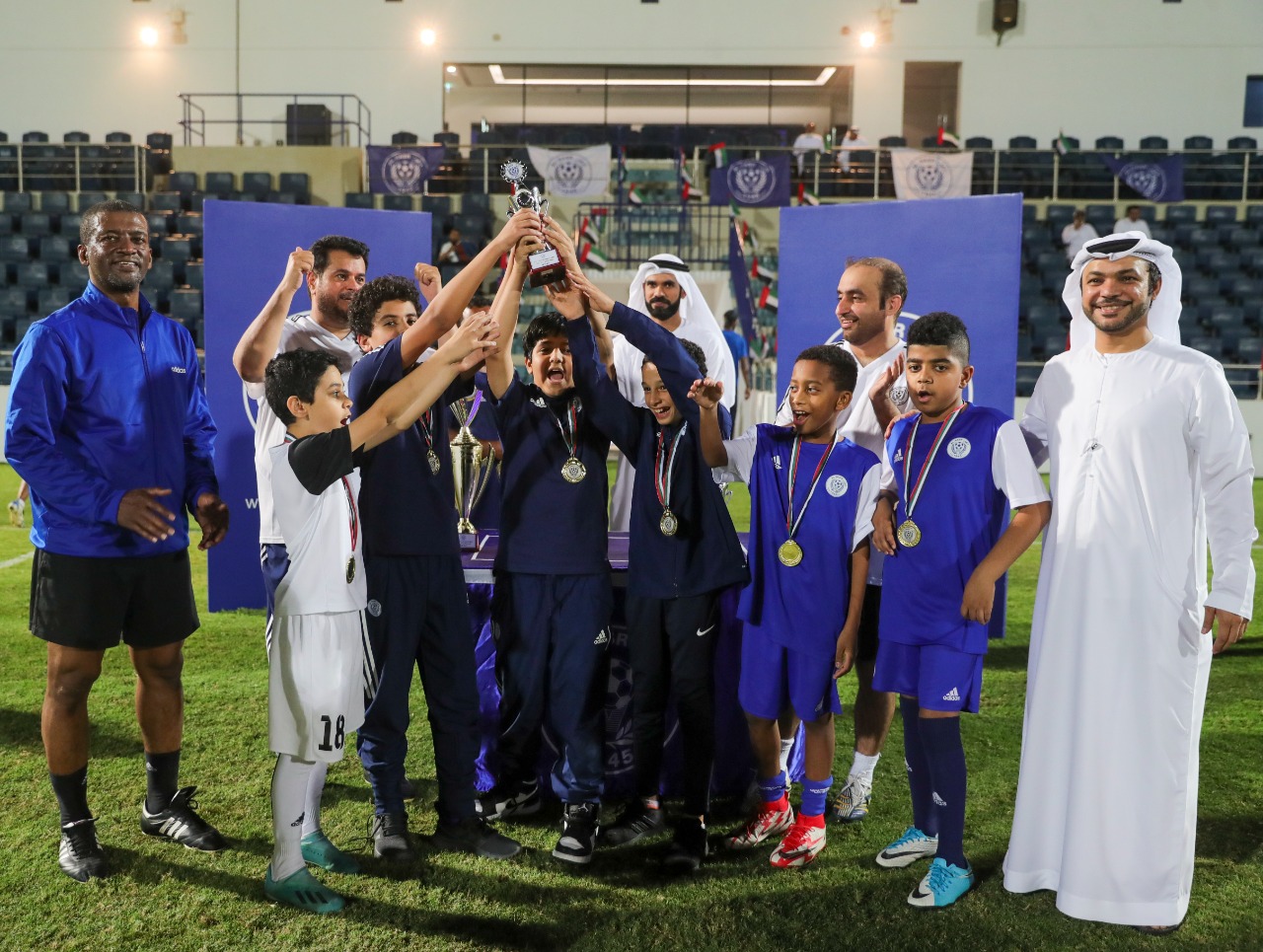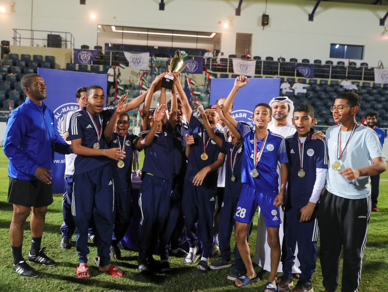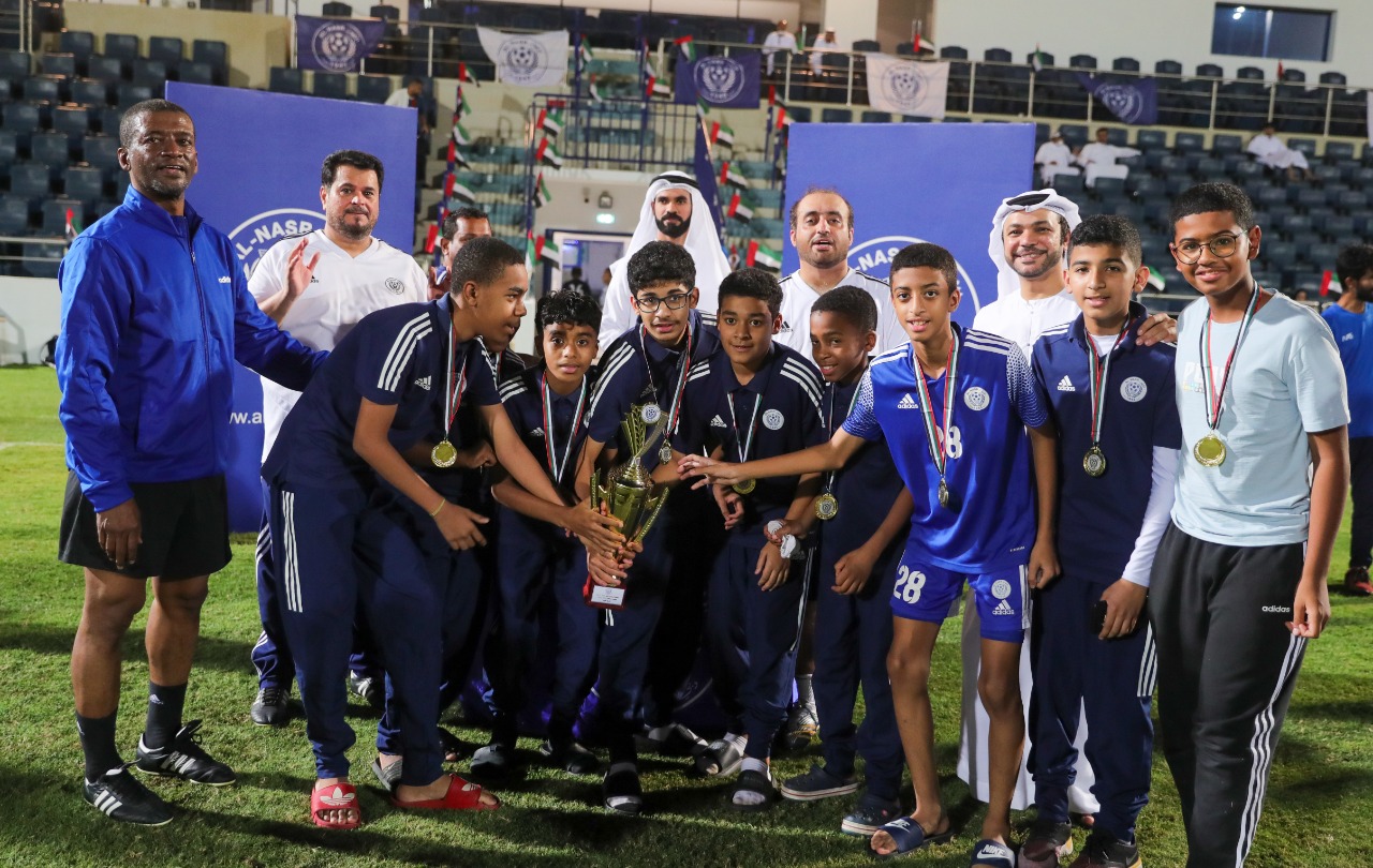 The closing ceremony was attended by Mr. Muhammad Al-Ghaithi, Dr. Hassan Suhail, Mr. Adel Shakri, members of the Football Company’s Board of Directors, a group of old players of Al-Nasr Club, Mr. Ahmed Al-Dalil, Director of the Football Academy at Al-Nasr Club, and a large number of fans and parents.