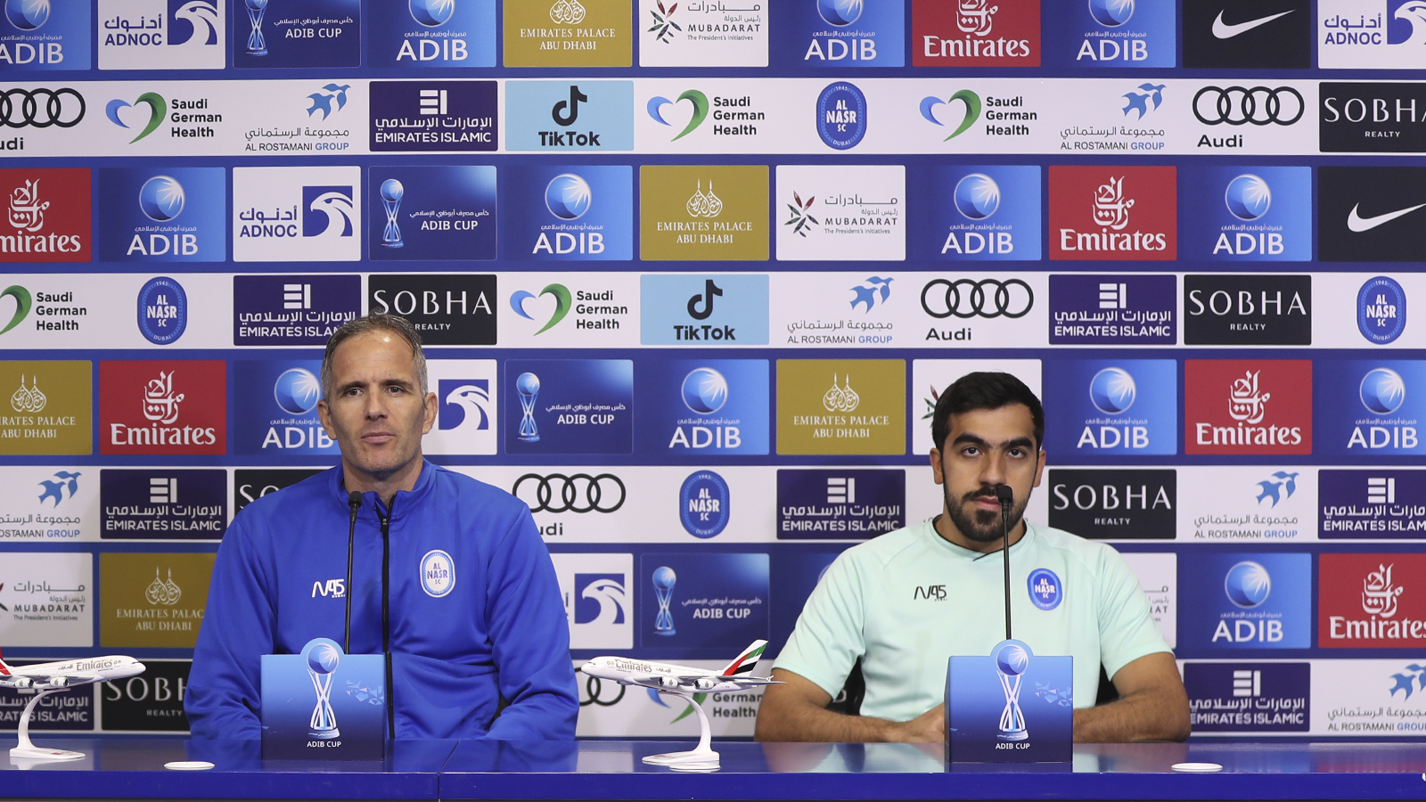During the introductory press conference for Al Nasr and Al Ain match in the semi-final first leg of Abu Dhabi Islamic Bank Cup, which will bring the two teams together on Wednesday, May 17 at Hazza bin Zayed Stadium at 7:35 pm, the coach of our first team, Mr. Goran Tomic, spoke about the atmosphere Before the match, and the team's preparations for it, he attended the conference accompanied by goalkeeper Abdullah Al-Tamimi.