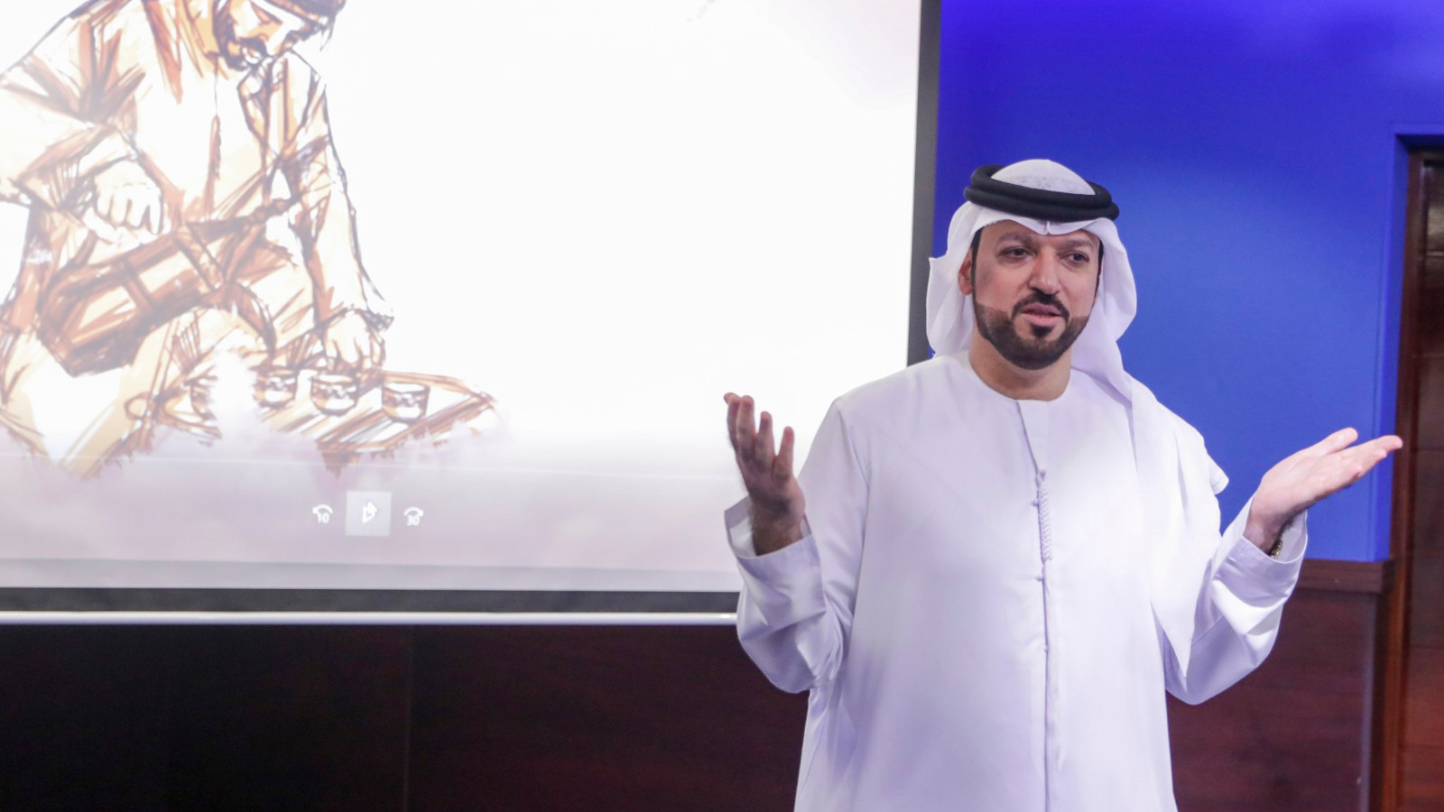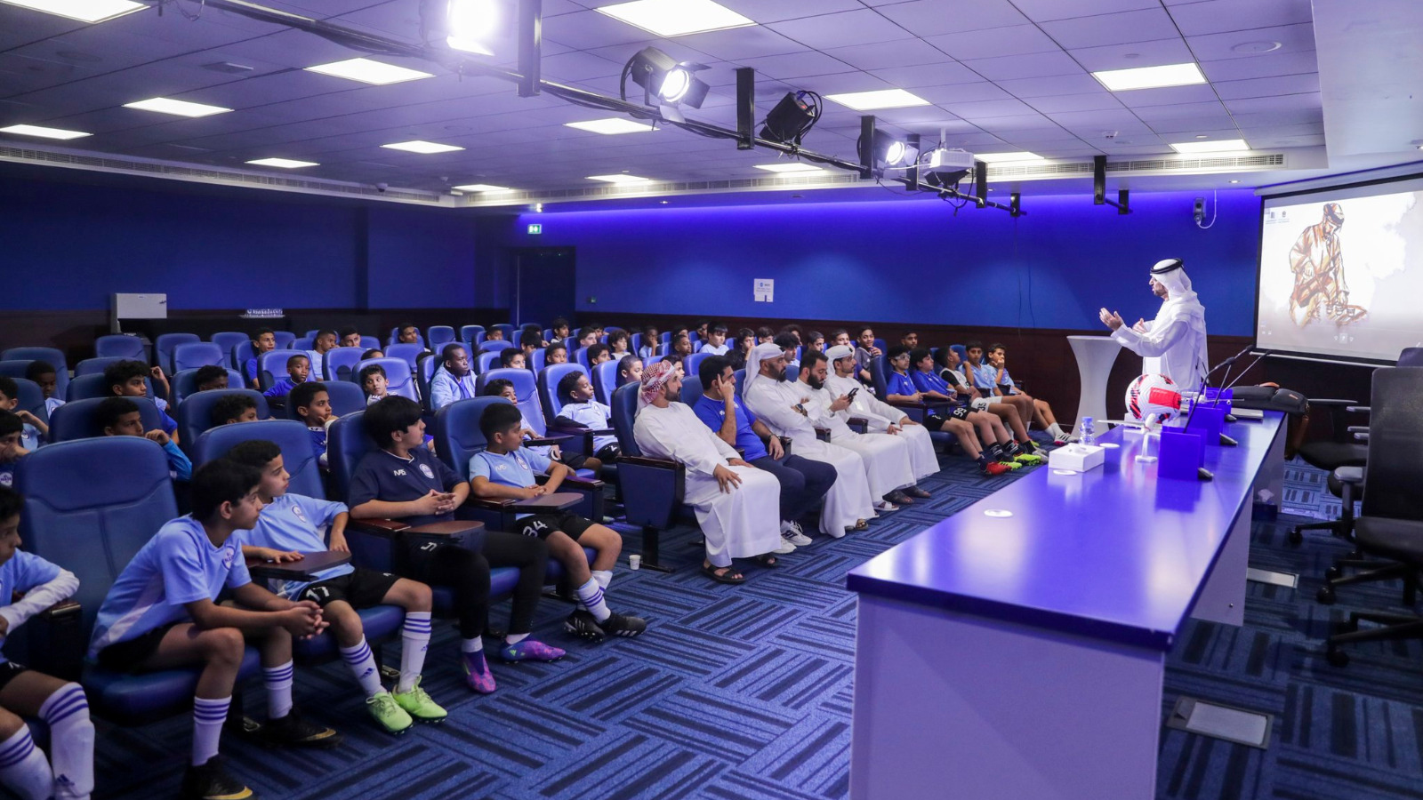 As part of the pioneering awareness-raising initiative "Ghars" presented by the Dubai Sports Council to clubs in the Emirate of Dubai, Al-Nasr Sports Club organized a lecture entitled "The Emirati Snare" for the players of Al-Nasr Football Academy, presented by Mr. Mohamed Ismail from the Archives and the National Library.