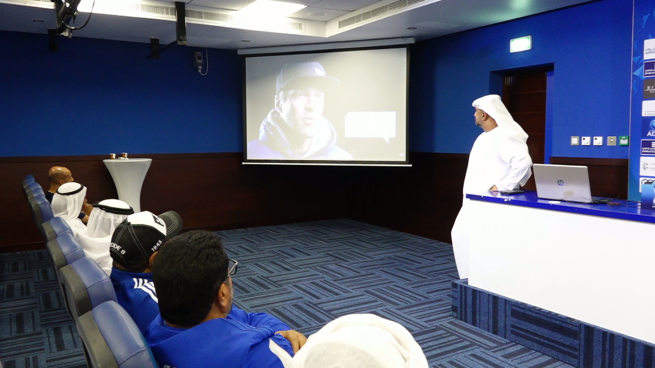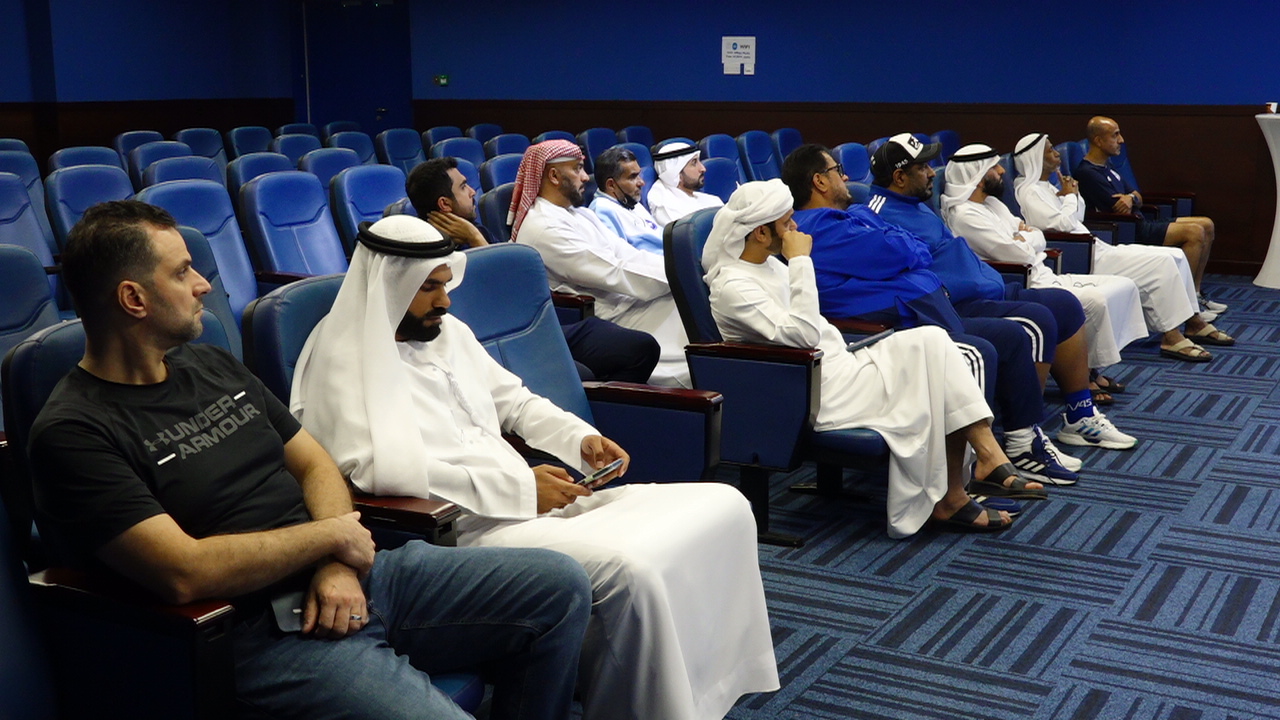 The lecture was delivered by Mr. Ahmed Al-Tayeb, Director of the Professional Sector in the Football Company, during which he talked about the administrative structure and the sports organizational structure in the UAE, and the structure of the Sports Authority, federations, clubs, and football councils. He also explained how the various structures and departments relation to  each other in sports institutions, and how to serve sports professionally and distinctively.