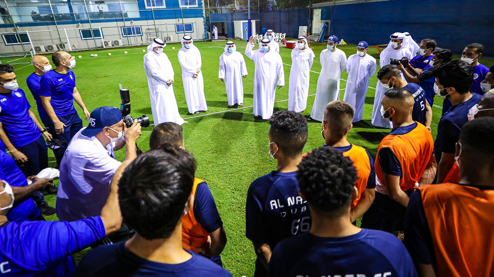 His Highness met with members of the technical, administrative and medical staff of the team alongside the players of the first football team, asking them to make more effort and give in training and to show the fighting spirit in the stadium to achieve the club's goals and ambitions in the next stage and to raise the flag of Al Nasr high.