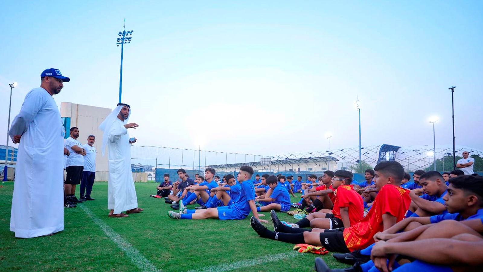 As part of a series of religious lectures for Al-Nasr Football Company players from 14-19 years old, a lecture on sports ethics was held today, delivered by Mr. Saleh Zayed from the Department of Islamic Affairs and Charitable Activities Department .