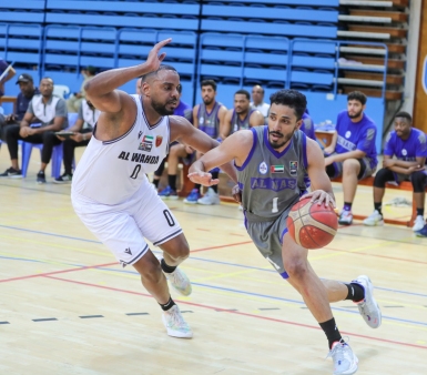 Al Nasr defeated its guest AL Wahda with a score of 107-73 in the match that was played at Rashid bin Hamdan hall during the seventh round of men's basketball league.