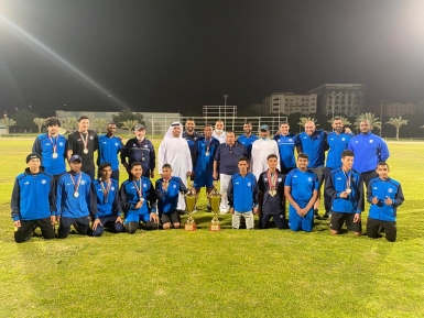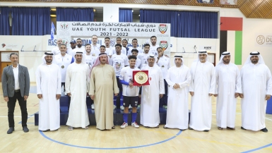 In presence of football company ,and sports games board members , and at Rashid Bin Hamdan hall , Al Nasr futsal youth team celebrated winning the 2021 _2022 league championship ,after defeating their guest Dibba Al Hissn with a score of 12_1 in the 15 round of the tournament.