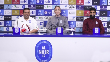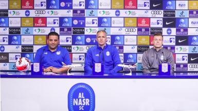 During the introductory press conference of Al Nasr and Al Dhafra match in the fourteenth round of ADNOC Pro League, which will be held on Friday, January 27 at Al Maktoum Stadium, Mr Goran Tomic, coach of our first football team, spoke about the team's preparations for the match, and he attended the conference accompanied by goalkeeper Ahmed Shambih.