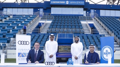 Audi presents a number of its latest models to the Al Nasr Club team members in support of the football games throughout the season.