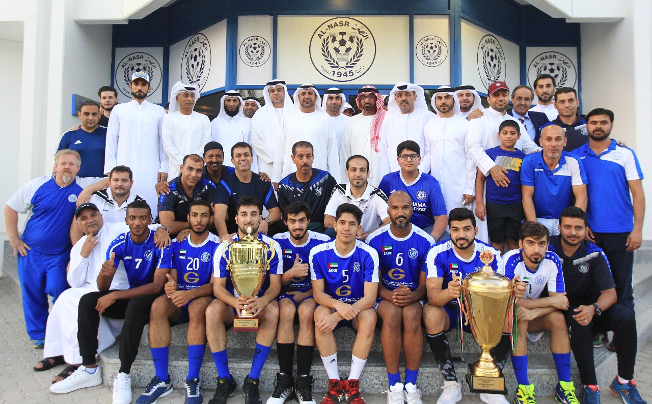 Al-Nasr Sports Games Company held a ceremony today to honor the volleyball first team, which was crowned with President's Cup after winning a historic match against Al Ain team Al-Jazira Club areana.H.E. Abdulrahman Abualshawarab, Chairman of Al Nasr Sports Games Company, dedicated the trophy to H.H. Sheikh Hamdan bin Rashid Al Maktoum, Deputy Ruler of Dubai, Minister of Finance and President of the Club and to His Highness Sheikh Rashid bin Hamdan Al Maktoum, Chairman of Al Nasr Club. The ceremoney was also attended by "H.E. Abdul Razzaq Al Hashimi, Vice Chairman of Al Nasr Sports Games Company, H.E. Abdulbasit Ali, Board of Director and Supevisor of Media Center and Mr. Mohammed Ali Al Awar, Executive Director of Al Nasr Sports Games Company."Thanks to God, Al Nasr volleyball, basketball and handball teams succeeded," he said. "The competition was strong in the championship and accquired the highest point in all competitions."At the beginning of the season we suffered from poor results and a lack of success, despite the signing highest level of coaches but the results were not satisfactory and the decision of the board of directors to promote the coach," Ziad Larqesh" of volleyball youth team, he has already succeeded in proving his existence and the results were at the highest level and deserved Contract renewal for a new season "He added: "The precious trophy achieved by the volleyball team is a precious title for all of us. It bears the name of His Highness the President of the State, and from today we will start thinking and planning for the next season because Al Nasr Club and its fans will not be tired of the competition and win the titles in all competitions. To achieve better results in next season. "Al Nasr Tunisian Coach "Ziad Larqesh" congratulated to the Board of Directors of Al Nasr Sports Games Company and the players and the technical and administrative members, stressing that the crowning of the precious cup yesterday was the result of effort and hard work of everyone, stressing that he sought during the last period to rehabilitate the players psychologically after the defeat of Al Ain in the two rounds of the last round of the playoffs in the league championship and demanded the players to not surrender to Al Ain and harvest the precious results to culminate in an exceptional season after being stepped up to take charge of the first team in the middle of the season.